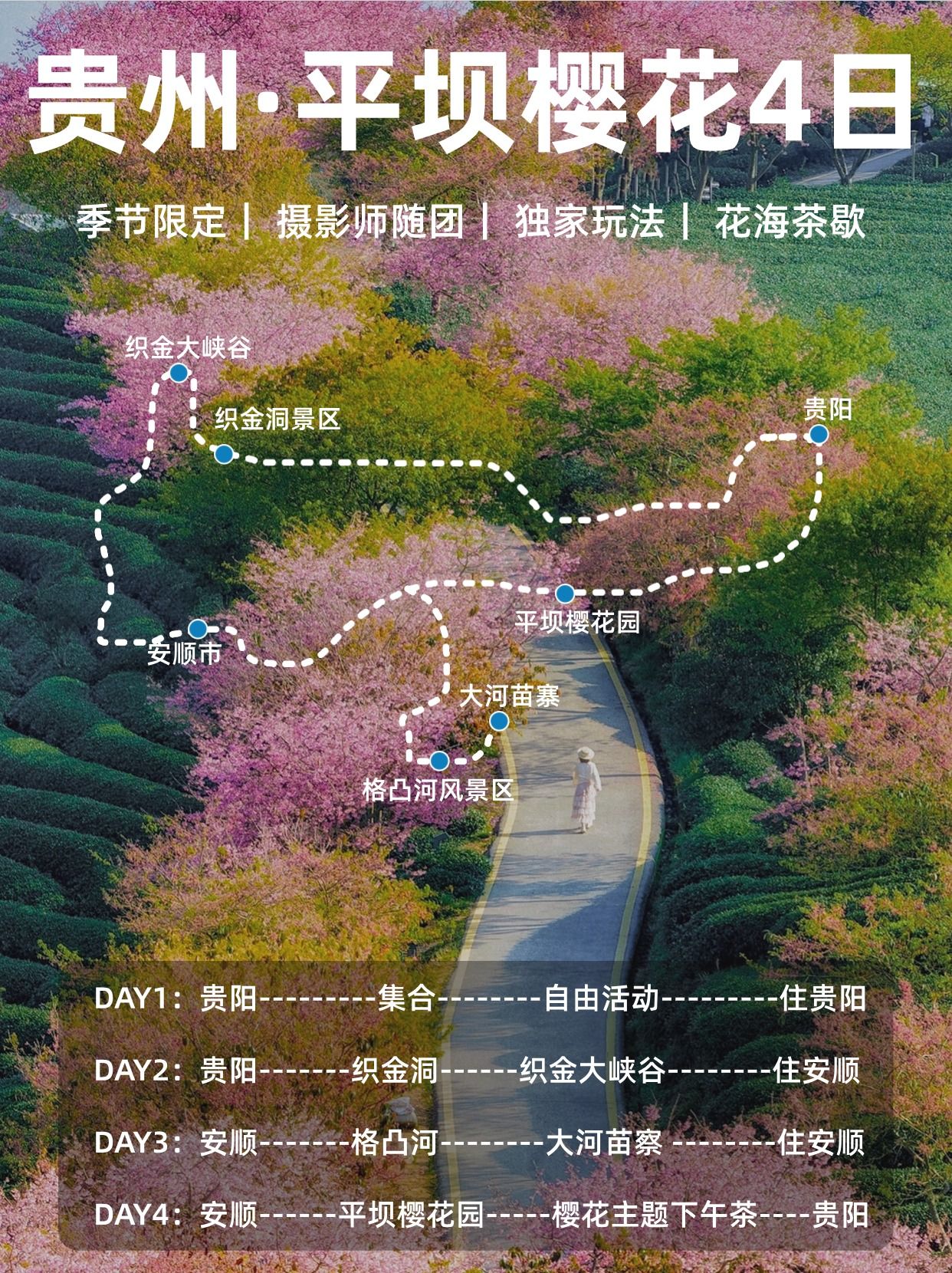 春和景明,踏青赏花,我们都在期待一次与自然的亲密接触,在草木落英间呼吸。这个春天一定不要错过这场樱花之旅,来贵州游览2.4万余亩的世界Zui大樱花园,轻奢住宿亲身体验地道MinZu风情,打卡经典景点,深入樱花林享用野奢下午茶,跟拍摄影师留影,遇见花海中Zui美的你~