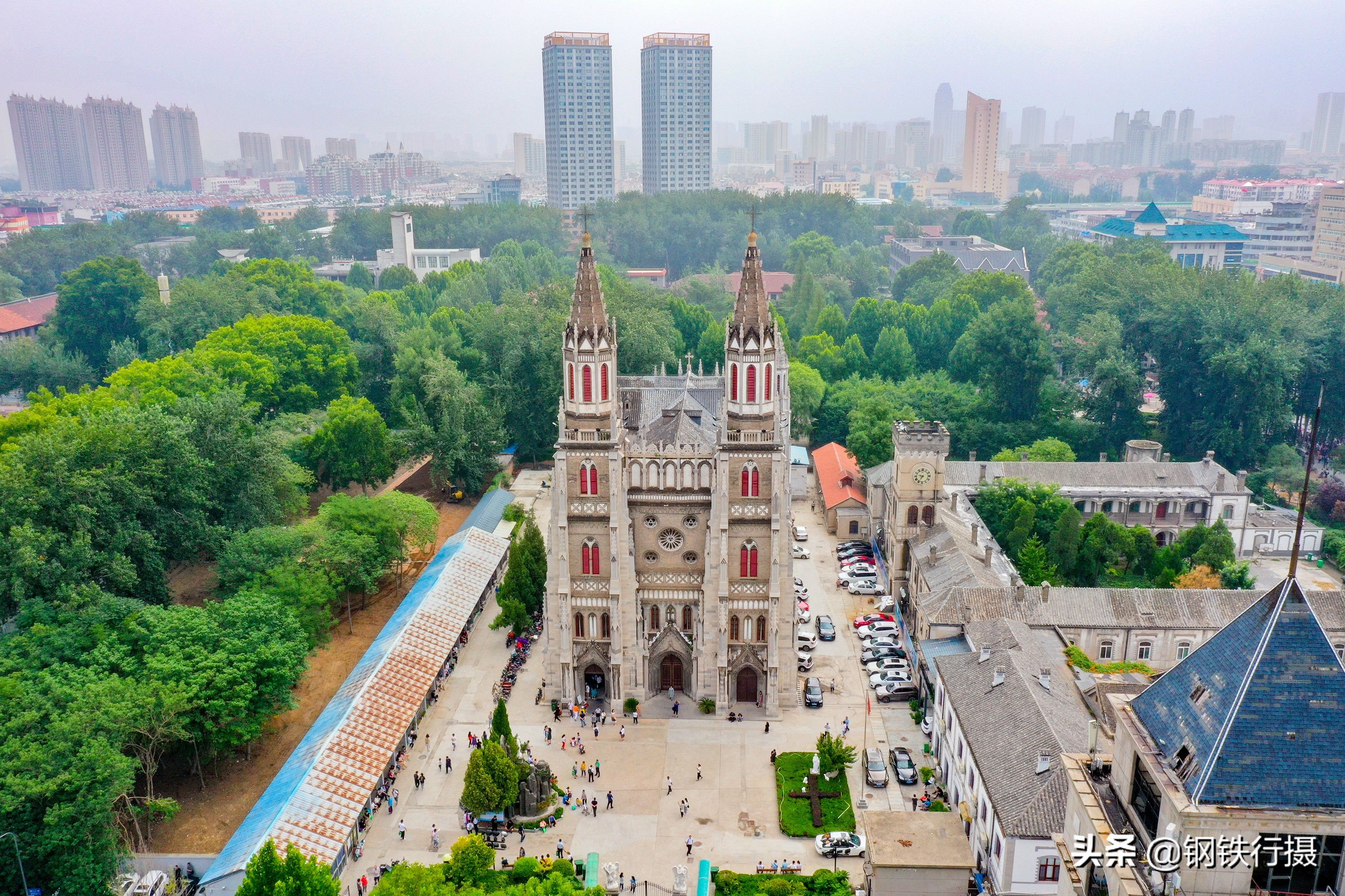 如果说济南的老火车站是济南的殇,那么位于洪家楼山东大学老校的洪家楼教堂就是济南的骄傲。这是现存的为数不多的哥特式建筑的教堂,它由奥地利庞会襄修士设计、中国劳工承建。光绪二十七年(1901年)开工建设,历经3年多时间,于光绪三十一年(1905年)5月竣工。整个建筑坐东朝西,立面为典型的哥特式建筑风格,平面呈“十字形”,象征着天主耶稣受难的十字架。