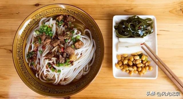 常德米粉是湖南省常德市的一道传统风味小吃,历史悠久,闻名三湘。米粉的主要原料是大米,经过特殊工艺制成洁白、混圆、细长且有弹性的粉条。用开水烫热后,配以牛肉、牛腩、肥肠等配料,再加上酱料和辣椒,口感丰富,营养美味。