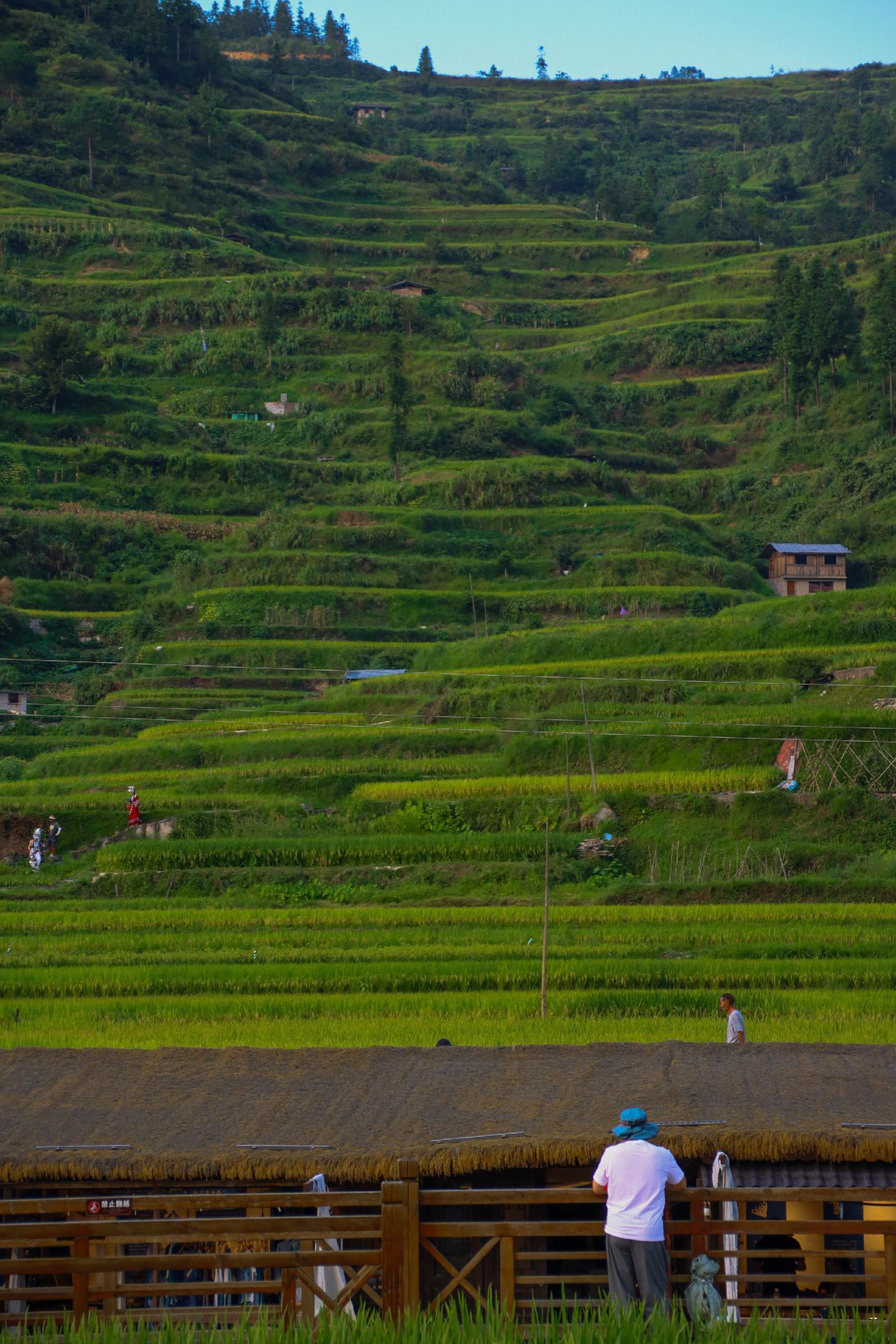 蓝天白云搭配绿油油的梯田,简直就是进入了人间仙境!