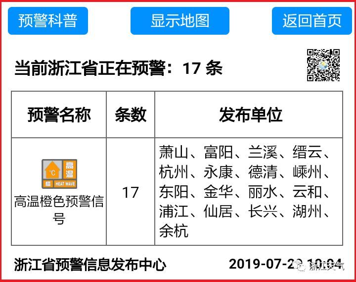 17个地市发布了高温橙色预警