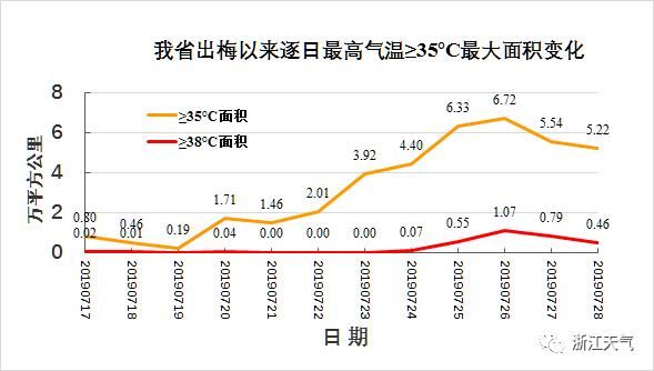 我省已连续5天出现较大范围高温天气,局部最高超38℃。其中杭州的高温从7月21日开始,连续9天打卡。
