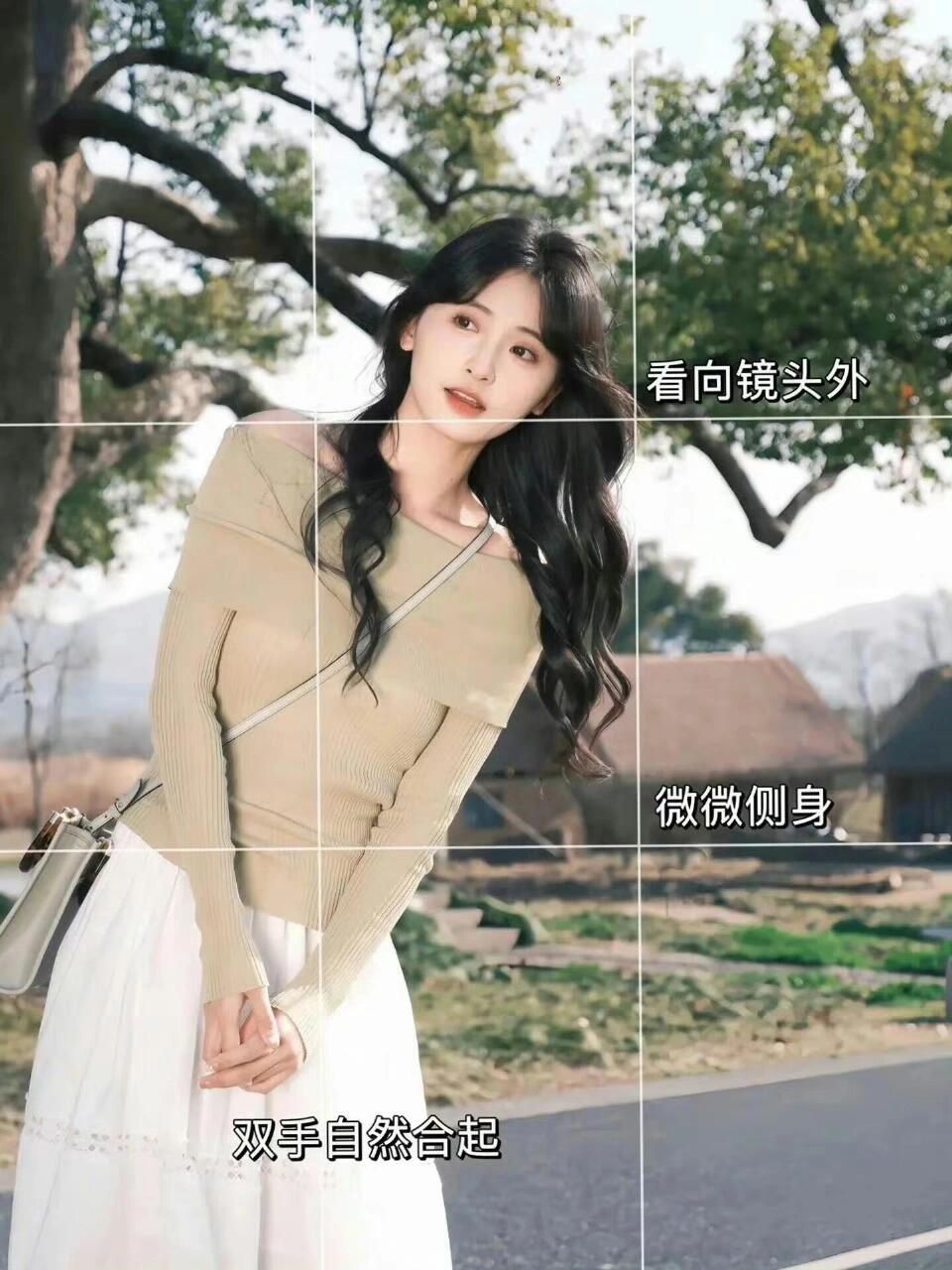自然站立的姿势是最经典也是最自然的出游拍照姿势。微微侧身,双手自然合起,看向镜头外的远方。这样的姿势不仅让你显得自然,而且能够营造出一种悠闲自在的氛围,让人感受到你在享受旅行的每一刻,很好看。