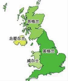 我们再来看看大不列颠岛,大不列颠岛上又分成三部分,包括南部的英格兰England,北部的苏格兰Scotland,以及西南部的威尔士Wales,也就是说大不列颠=英格兰+苏格兰+威尔士。在此基础上结合上面说到的北爱尔兰共同组成了联合王国,英国就是这主要的四部分构成的。
