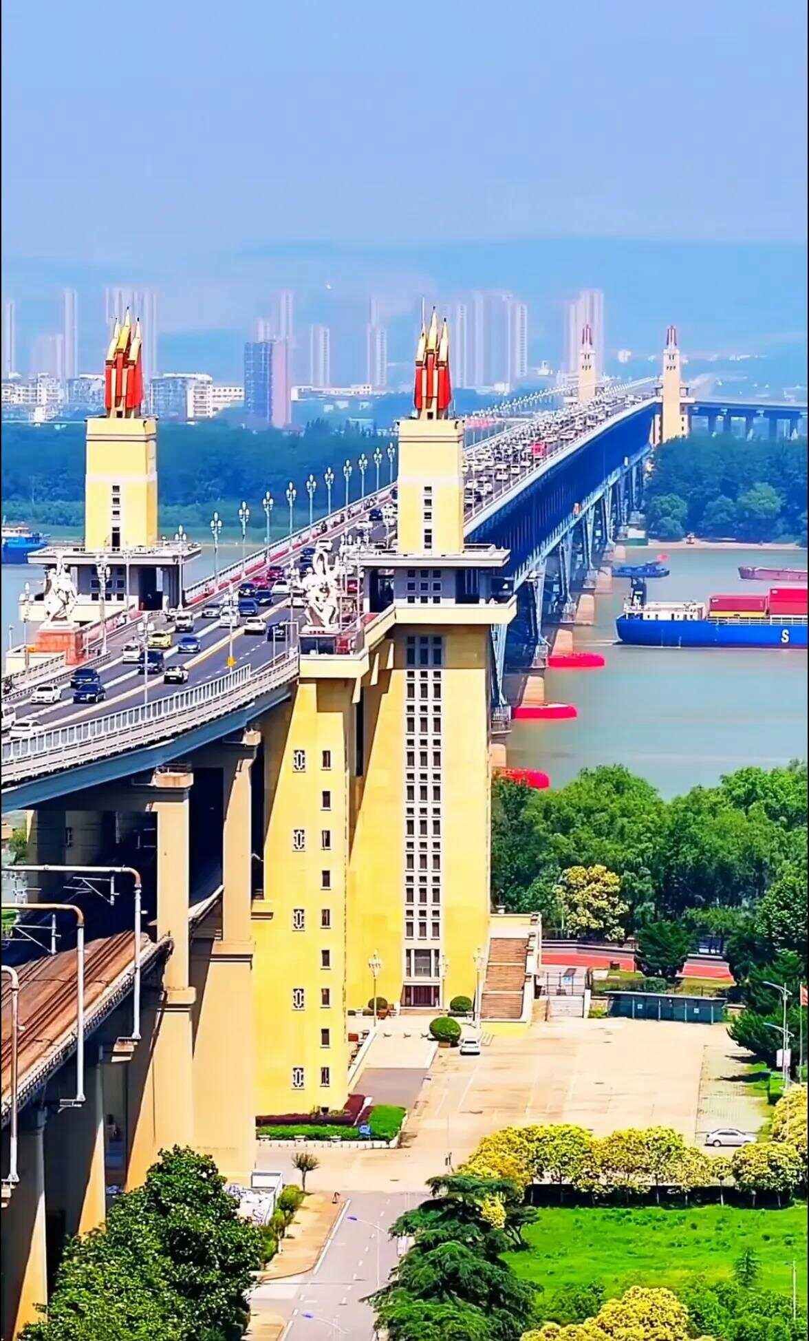 9、南京长江大桥:这座桥位于南京市西北,是中国第一座自主设计建造的双层式铁路、公路两用桥梁。南京长江大桥不仅是交通要道,也是南京的标志性建筑。游客可以步行或乘车过桥,感受长江的壮阔,欣赏到两岸的美景,仿佛能感受到历史的脉动。