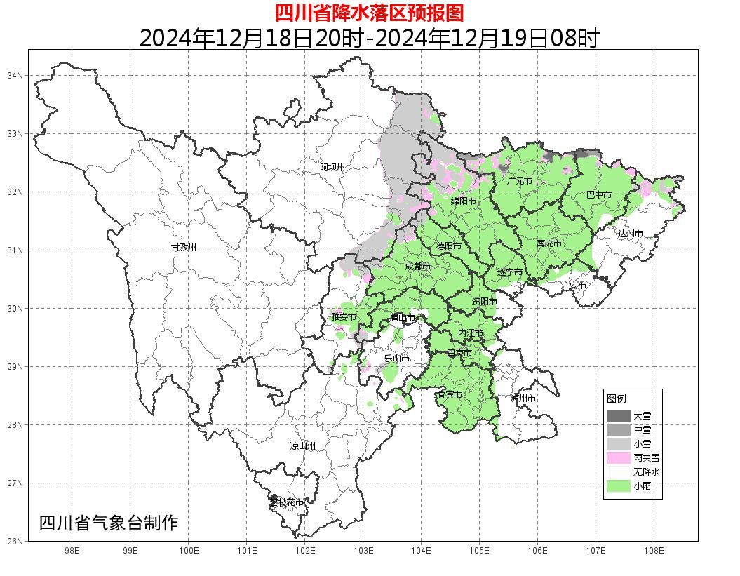 12月18日20时-19日20时成都市降水落区预报图