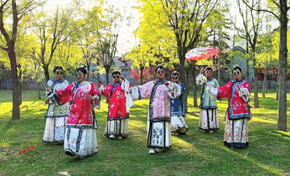 1.“晋商少奶奶”组团在晋祠公园里录制短视频。