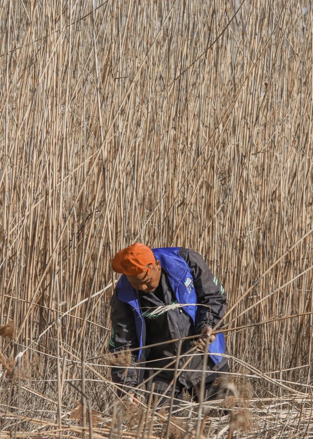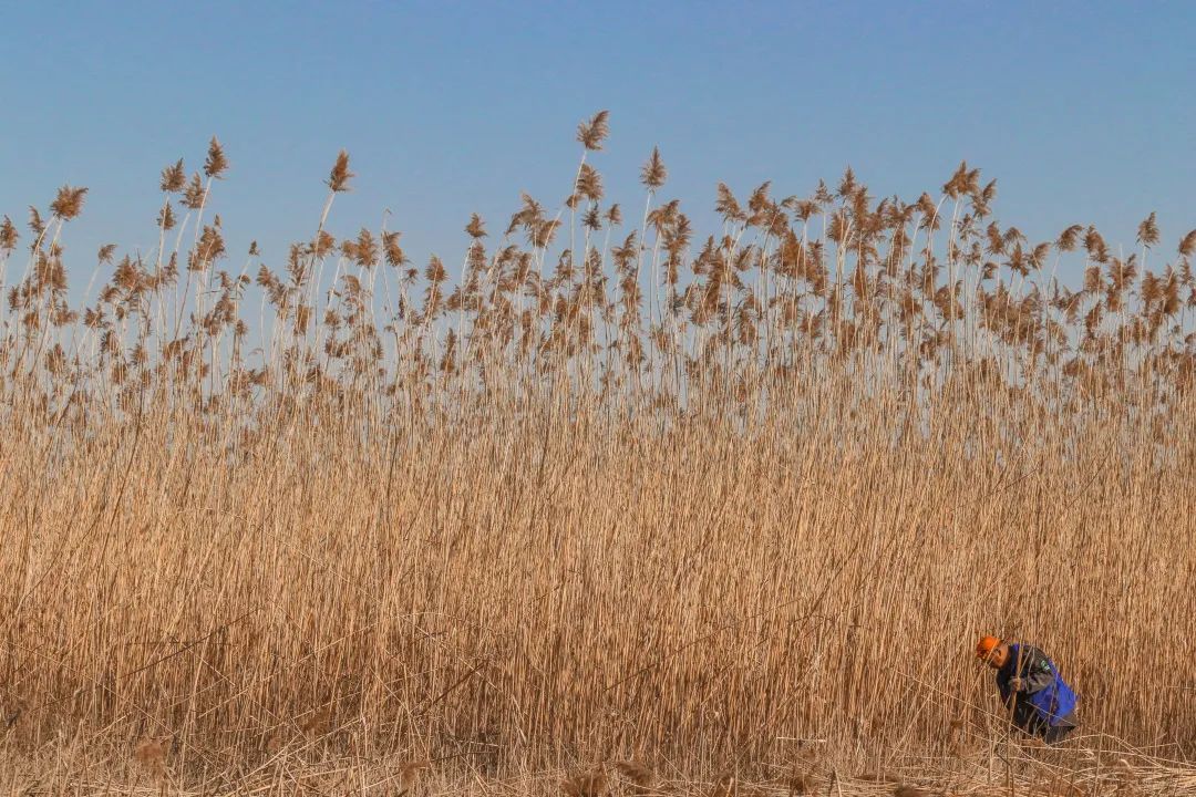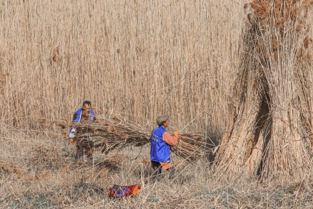 芦苇滩地高低不平,目前主要依靠人力完成收割,收割上来的芦苇会进行二次加工。