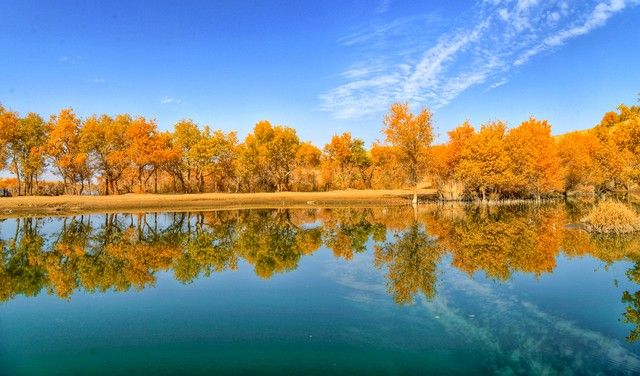 库尔勒胡杨林:库尔勒周边有大片的胡杨林,尤其是在秋季,金黄色的胡杨叶在阳光的照射下显得格外迷人。胡杨是一种生命力极强的树种,被誉为“沙漠英雄”,在这里可以近距离感受这种奇特的植物。