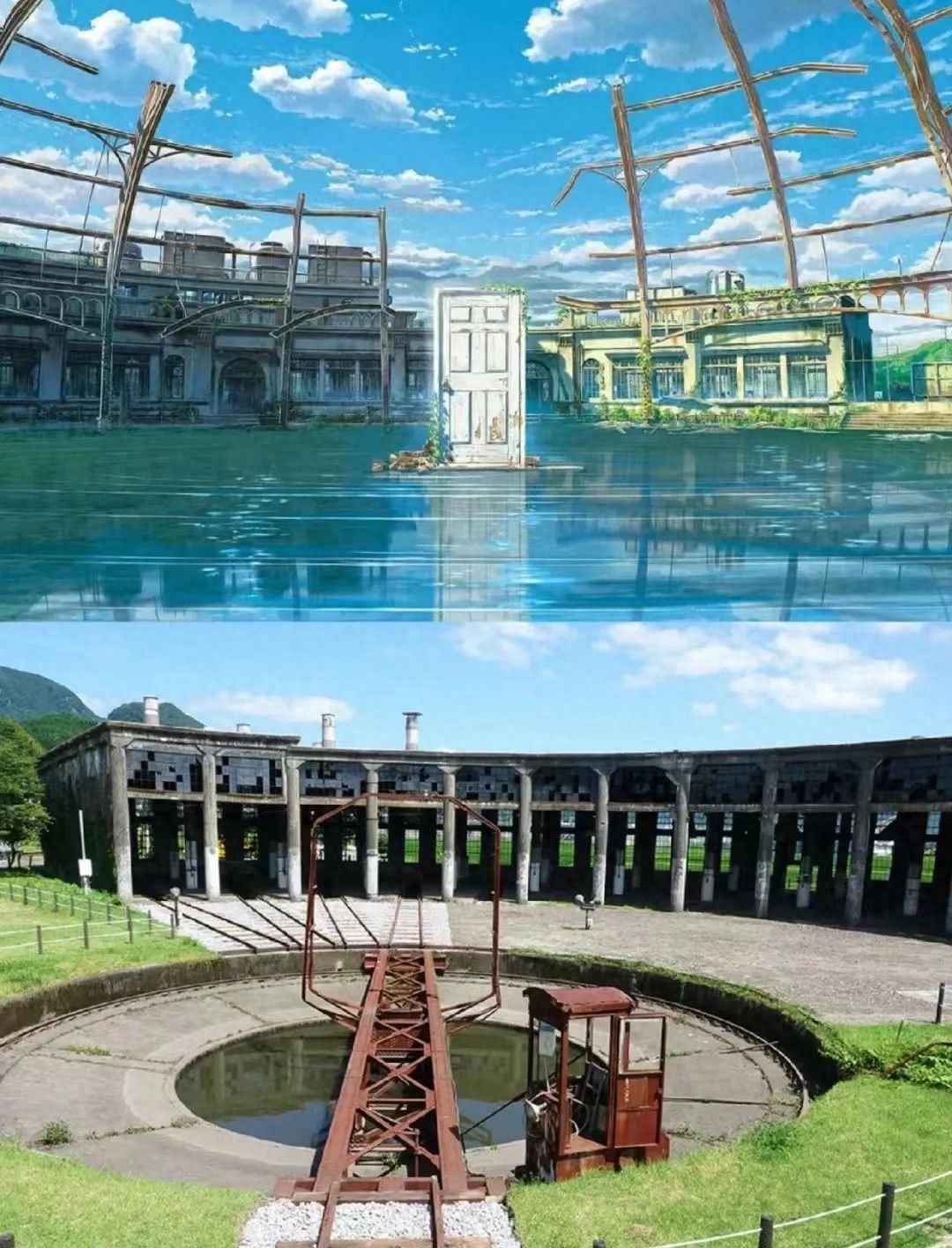 新海诚天灾三部曲里的最终章,动画片头里有扇废墟中的门,也是铃芽找到的第一扇门,贯穿了整个故事。这扇门的取景地点是旧丰后森机关库,这个地方曾经是日本最早蒸汽火车的据点,现在是九州仅剩的扇形机关库。