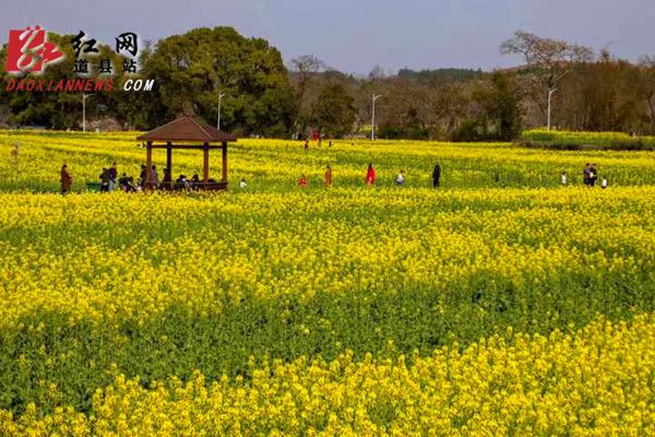 红网时刻永州3月1日讯(通讯员 蒋克青 蒋远鸣 谭诚)2月26日,随着气温的回升,湖南省道县两河口千亩油菜花盛开,把大地点缀的金灿灿,美不胜收,迷醉了前来踏春的游人。近年来,道县大力实施旅游扶贫工程,发动群众利用冬闲农田种植油菜,发展生态乡村旅游,促农增收。