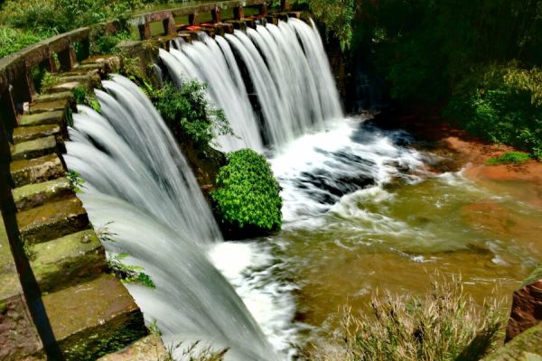 花溪十三桥位于蜀南竹海景区东端万里镇,原名潦水河,全长约5公里,溪流顺谷而下,阳春三月,桃红李白,满溪落花,蜂追蝶逐,故名花溪。