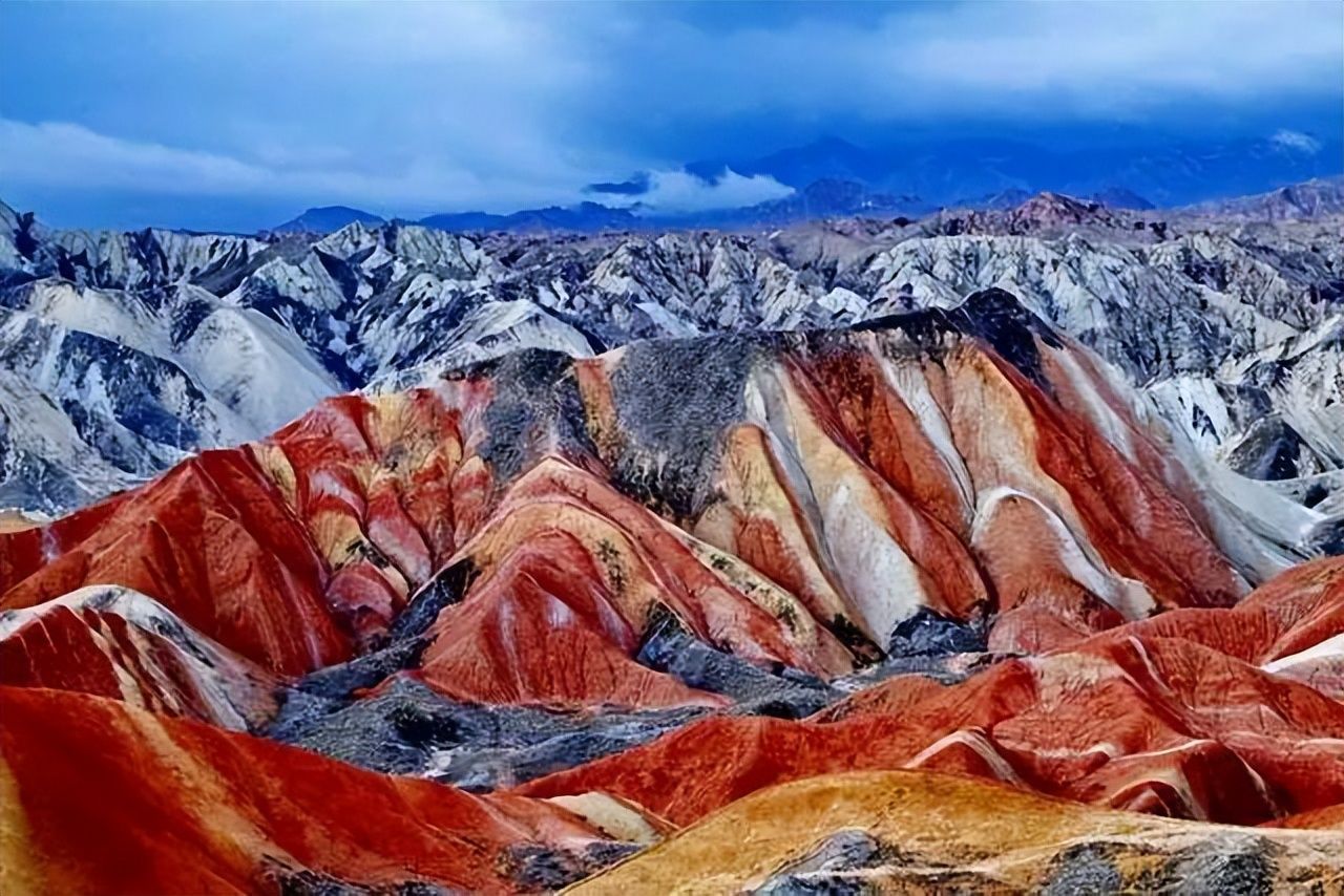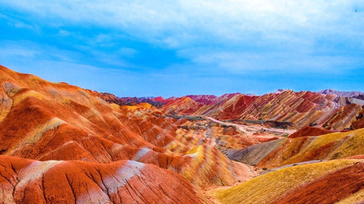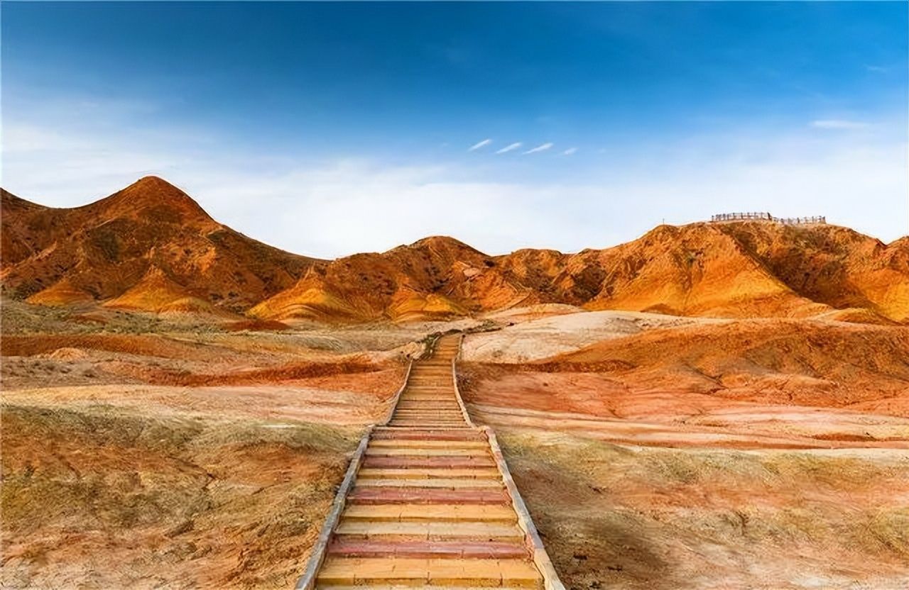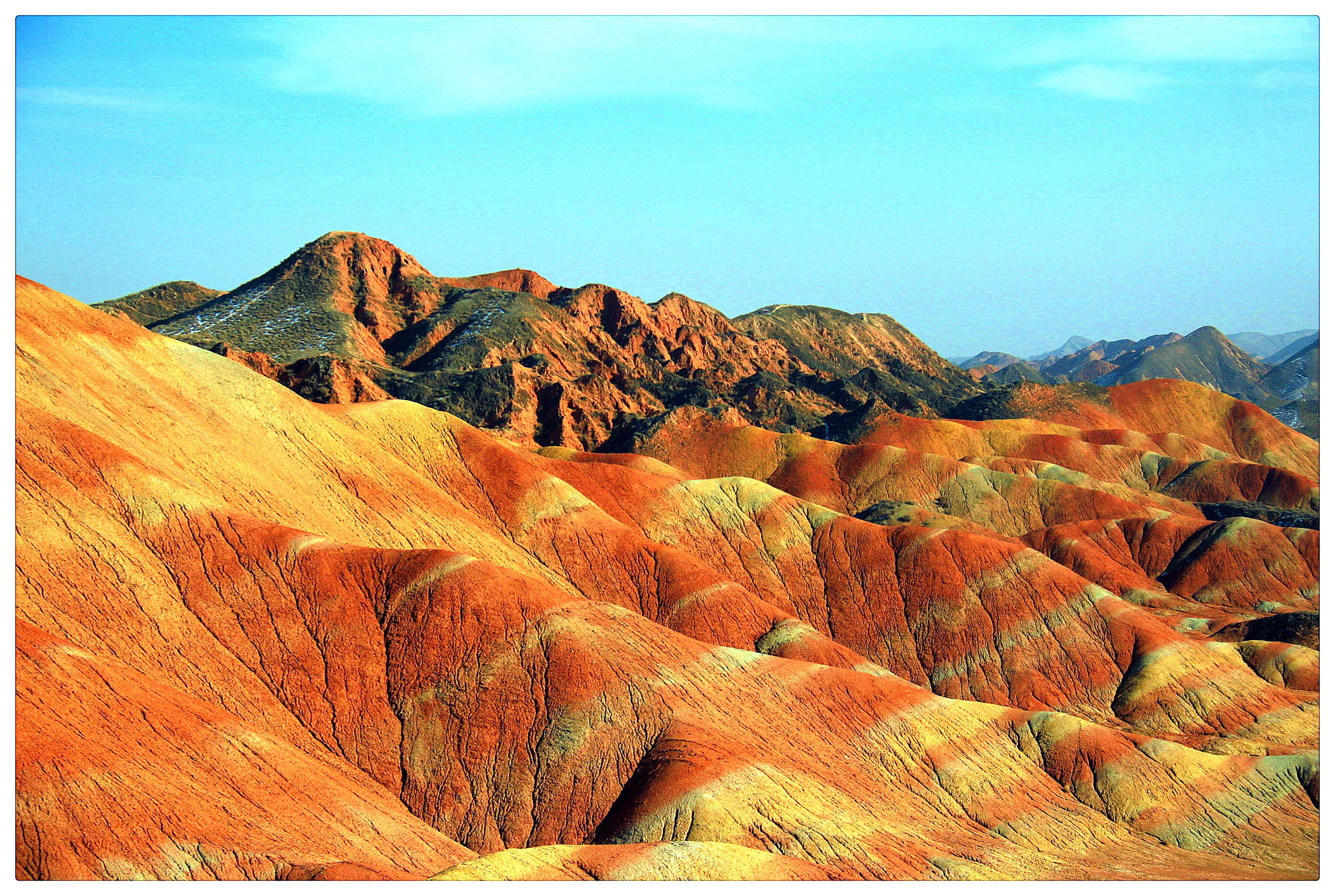 下午两点,到达张掖七彩丹霞地质公园。七彩丹霞地貌群位于张掖市临泽县倪家营乡南台村,平均海拔1850米,东西长约45公里,南北宽约10公里。此处的丹霞地貌群以面积大、集中,层理交错、岩壁陡峭、气势磅礴、造型奇特、色彩斑斓而称奇。