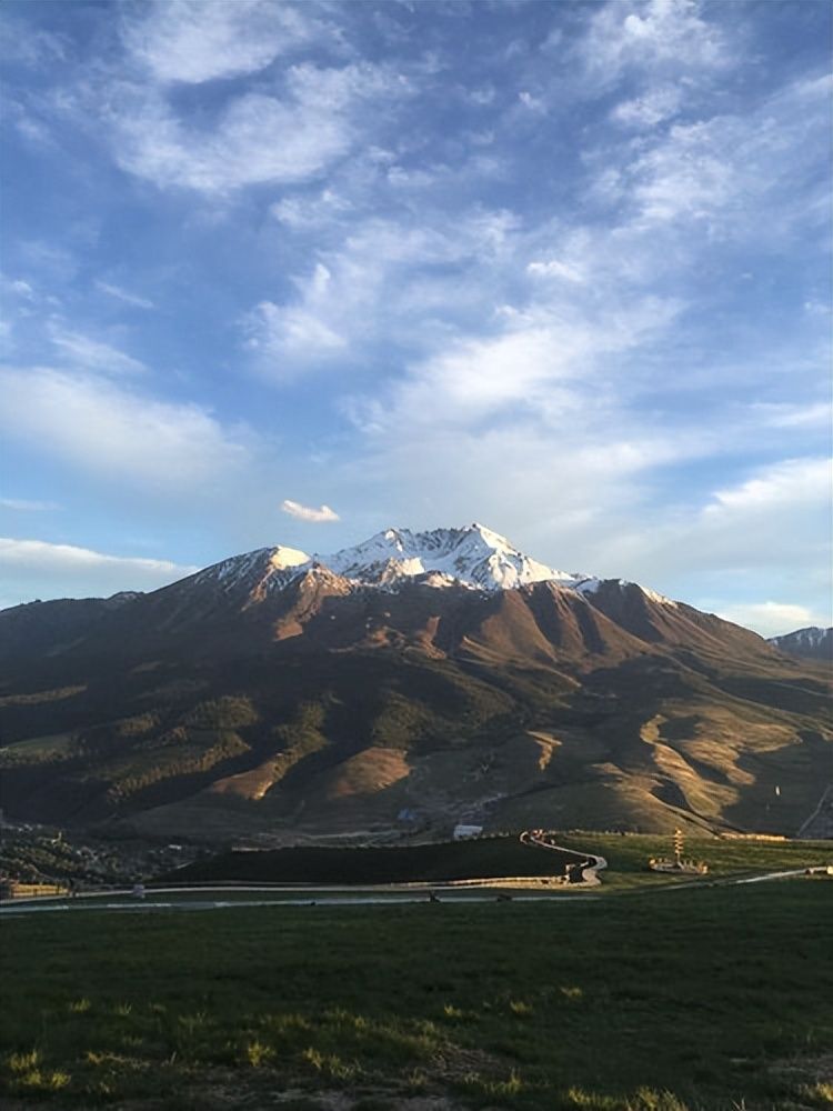 下了车,风极大,冷飕飕的。站在达坂山观景台,俯瞰山下小镇,但见星星点点的房屋。远处有壮阔的雪山,山顶的白雪与白云相接,美丽极了。
