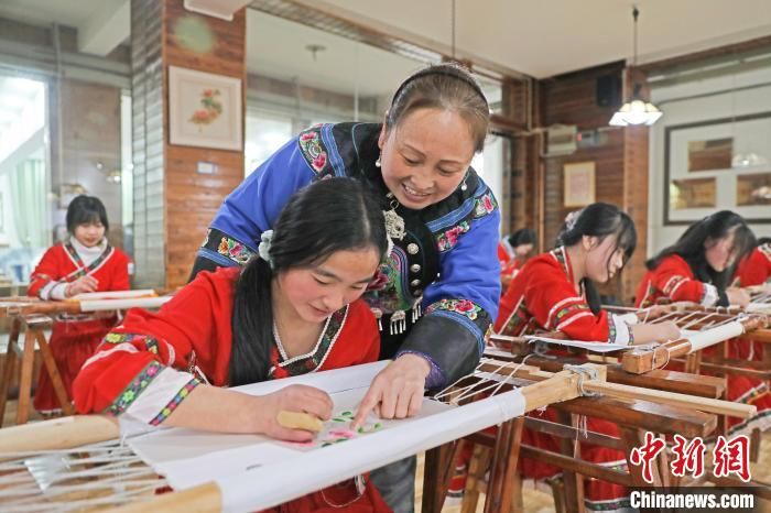 图为彭水绣娘正在学习制作苗绣。赵勇摄