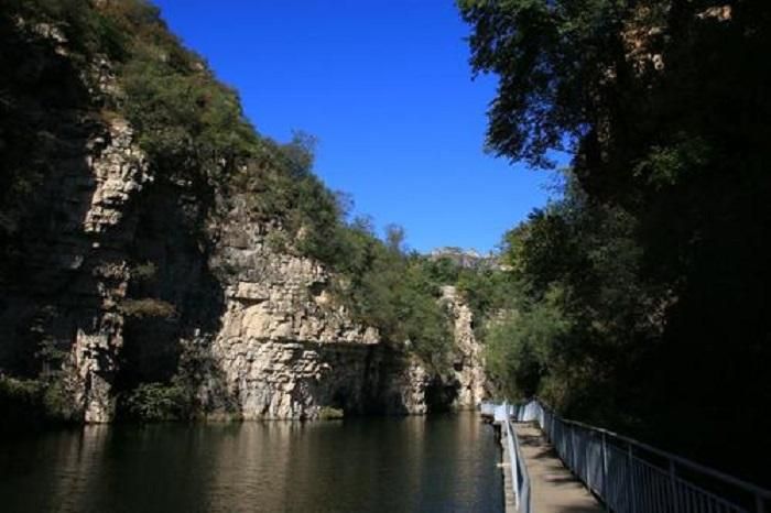 3. 百里峡国家地质公园:由三条峡谷组成,全长105华里。峡谷形如鹿角,最外边的一条被称为“蝎子沟”。蝎子沟内有“龙潭映月”、“摩耳崖”、“铁锁崖”等壮景。