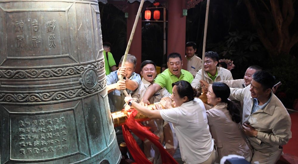 当晚11:30,在南山寺吉祥钟亭,僧众引领游客敲响108钟声,市民游客许下对新一年的祝福与期盼,共同祝愿世界和平、祖国繁荣昌盛,一同欢庆新的一年到来。撞钟迎新,是中华民族辞旧迎新、祈求吉祥平安的传统习俗。“闻钟声,烦恼轻,智慧长,菩提增……”撞响108响钟声,寓意去除人生的108种烦恼,获得吉祥和安康。跨年夜到南山景区游览和祈福,与众人一起为新年许下美好的祝愿已成为越来越多人的选择。