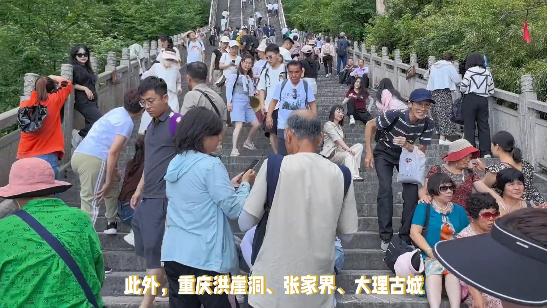 此外,重庆洪崖洞、张家界、大理古城、峨眉山等景区也迎来了客流高峰,景区内外道路和停车场均显得捉襟见肘,游客们的热情高涨,甚至戏称"景点好像有1亿人"。