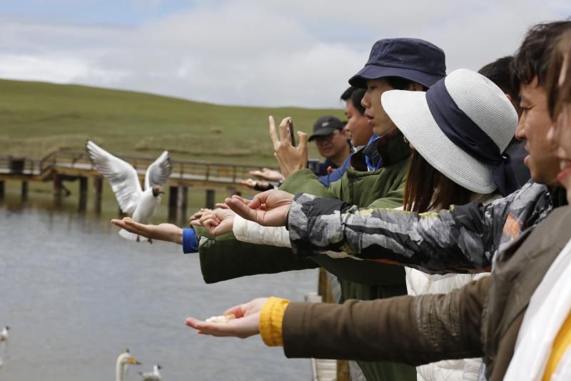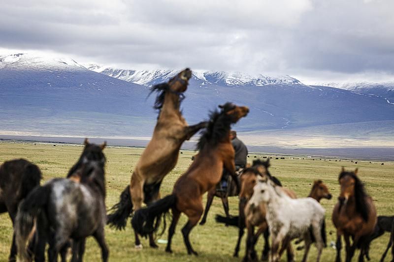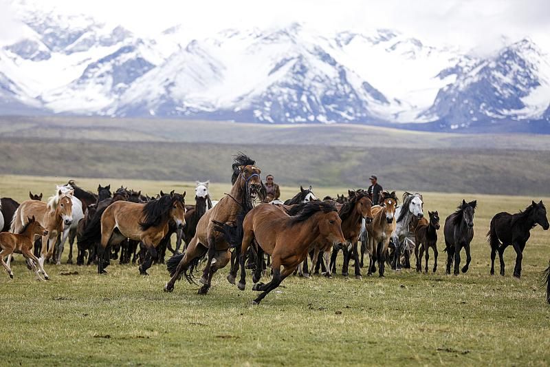 每年的四月,上万只天鹅和一些珍稀禽鸟类,会不远万里飞到这里繁衍,聚集在开都河心岛。虽然是高寒草原,但是却到处都有鲜花点缀,黄的,紫的星罗棋布,傍水而生。每年的夏季,巴音布鲁克草原都是一片绿水青山,平静的湖面上倒映着雪山,湛蓝的天空上白云朵朵,无数的景观交相辉映构成一幅静谧的油彩画卷。