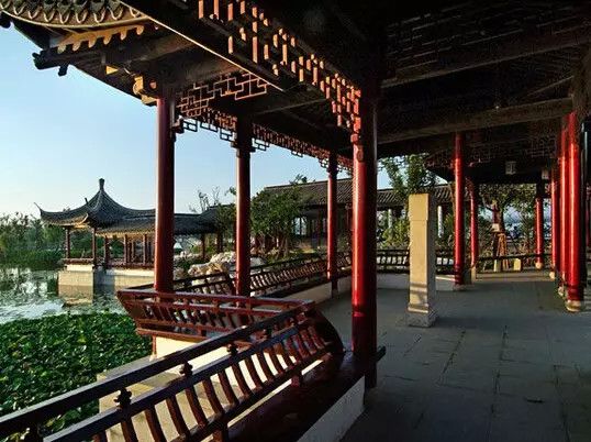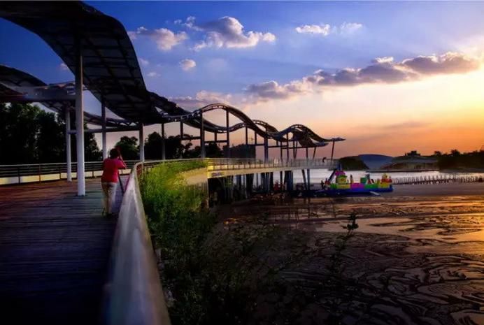 地处太湖、蠡湖、梁溪河交汇处,长达2公里的木栈桥亲水平台把各类湿地串连成线。