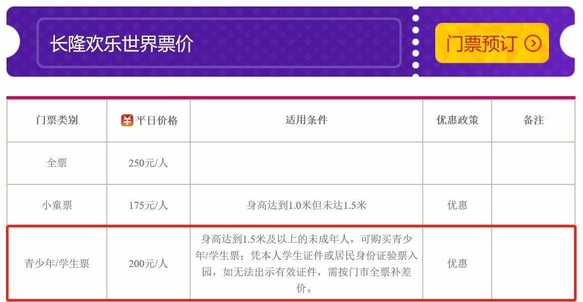 记者在其官网看到,长隆集团已将旗下长隆野生动物世界、长隆欢乐世界和长隆飞鸟乐园等主题公园原"学生票"调整为"青少年/学生"票,身高达到1.5米及以上的未成年人可购买相关优惠票,并凭本人学生证件或居民身份证验票入园。