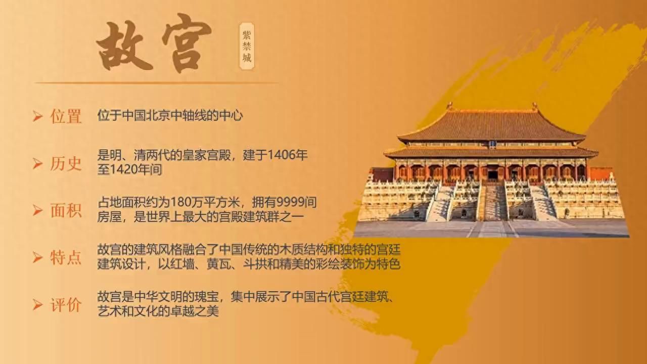 - 太和殿:太和殿是故宫的正殿,也是明清两代皇帝举行大典的场所。它的建筑规模宏大,装饰华丽,是故宫的核心建筑。