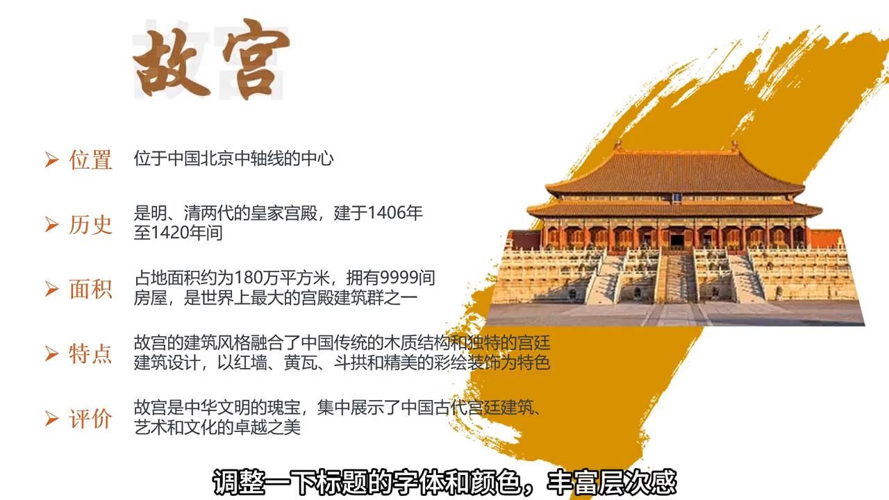- 设计幻灯片:根据景点的特点和需求,设计每张幻灯片的布局和内容。