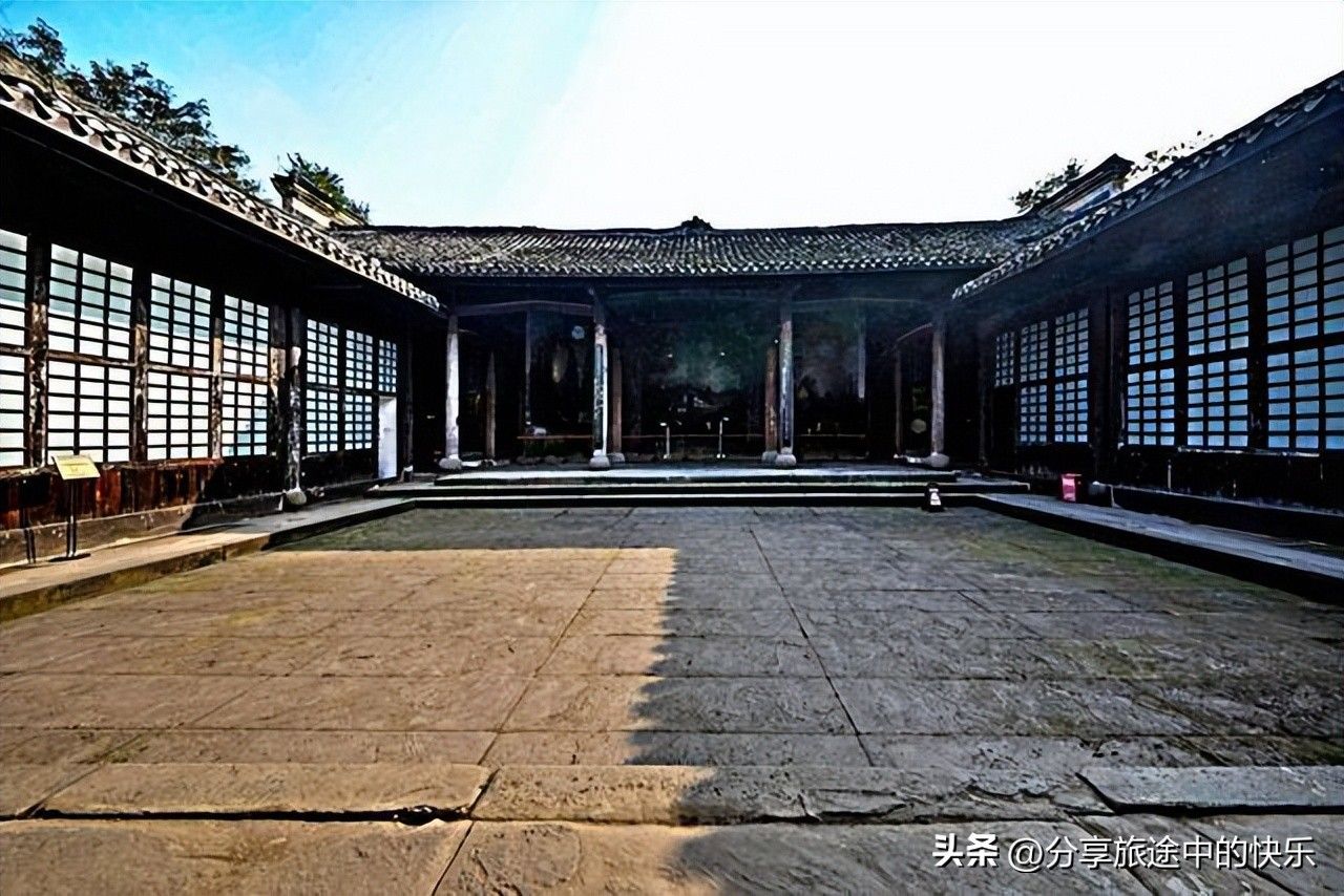 第四处是慧光寺,原名禹王宫,位于李庄古镇的中心,是李庄现存最大的清代建筑,建于1831年,由一主一次两个四合院构成,其中主院有山门、戏楼、正殿、后殿、魁星阁及厢房等建筑。寺内有一戏台,是四川保存最完整的古戏台之一。