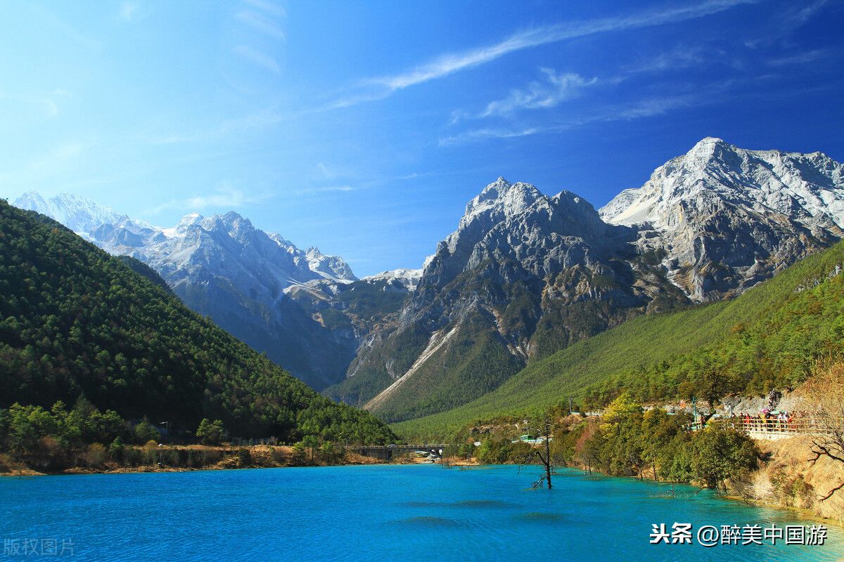 蓝月谷躺在常年积雪的玉龙雪山脚下,湖岸四季如春,植被繁茂,雪峰衬背。湖水是透明的湛蓝,绿意点缀其间。湖山相映,如梦如幻,几成仙境。天路雪域外,情殇蓝月谷。雪光通人性,蓝月悟莲心。蓝月谷风景区位于玉龙雪山东麓甘海子以北、云杉坪南侧的山谷之中。坐在大巴上,从盘山的公路看到蓝月谷的第一眼是最惊艳的,颜色真的很美。