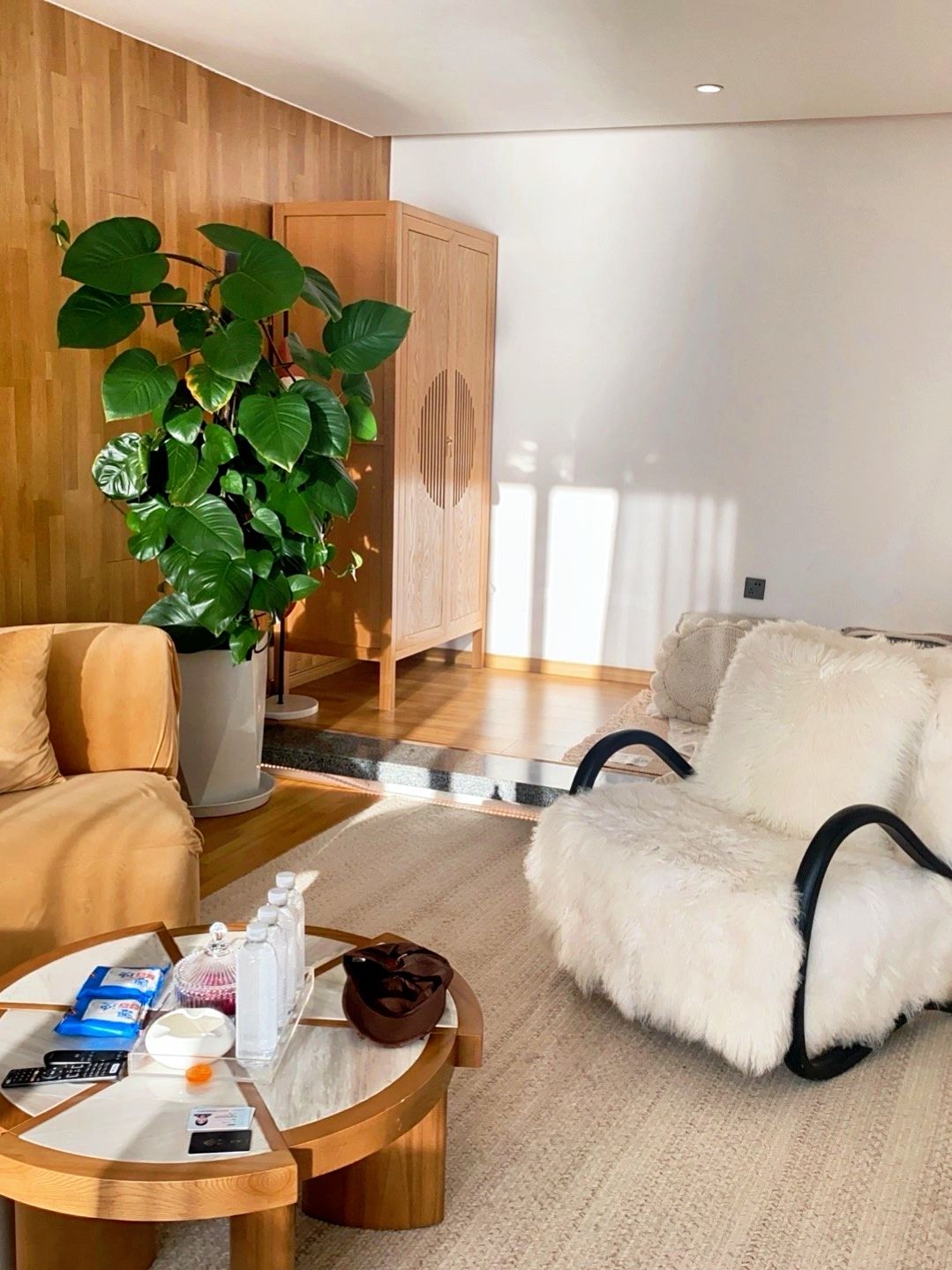 环境舒适:院子里有很多花花草草,坐在里面喝茶撸猫,很是自在。房间里智能马桶、戴森吹风机、投影仪这些设施都有,住着挺舒服。