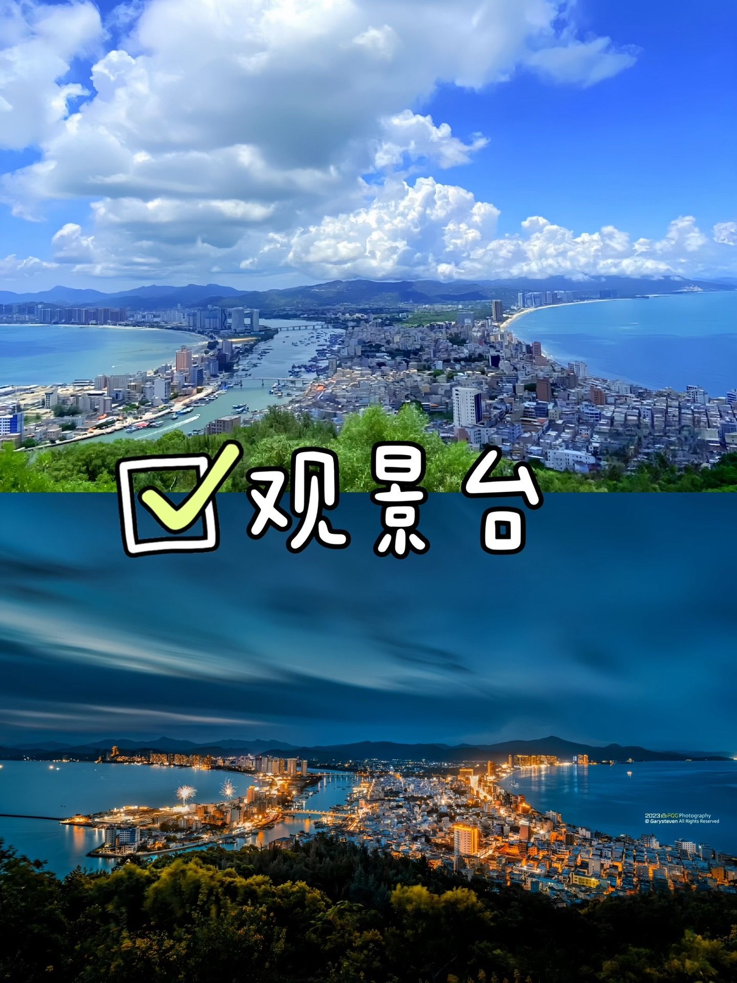 双月湾观景台:站在观景台上,你可以俯瞰整个双月湾的壮丽景色,欣赏蓝天、白云、碧海和绵延的沙滩。