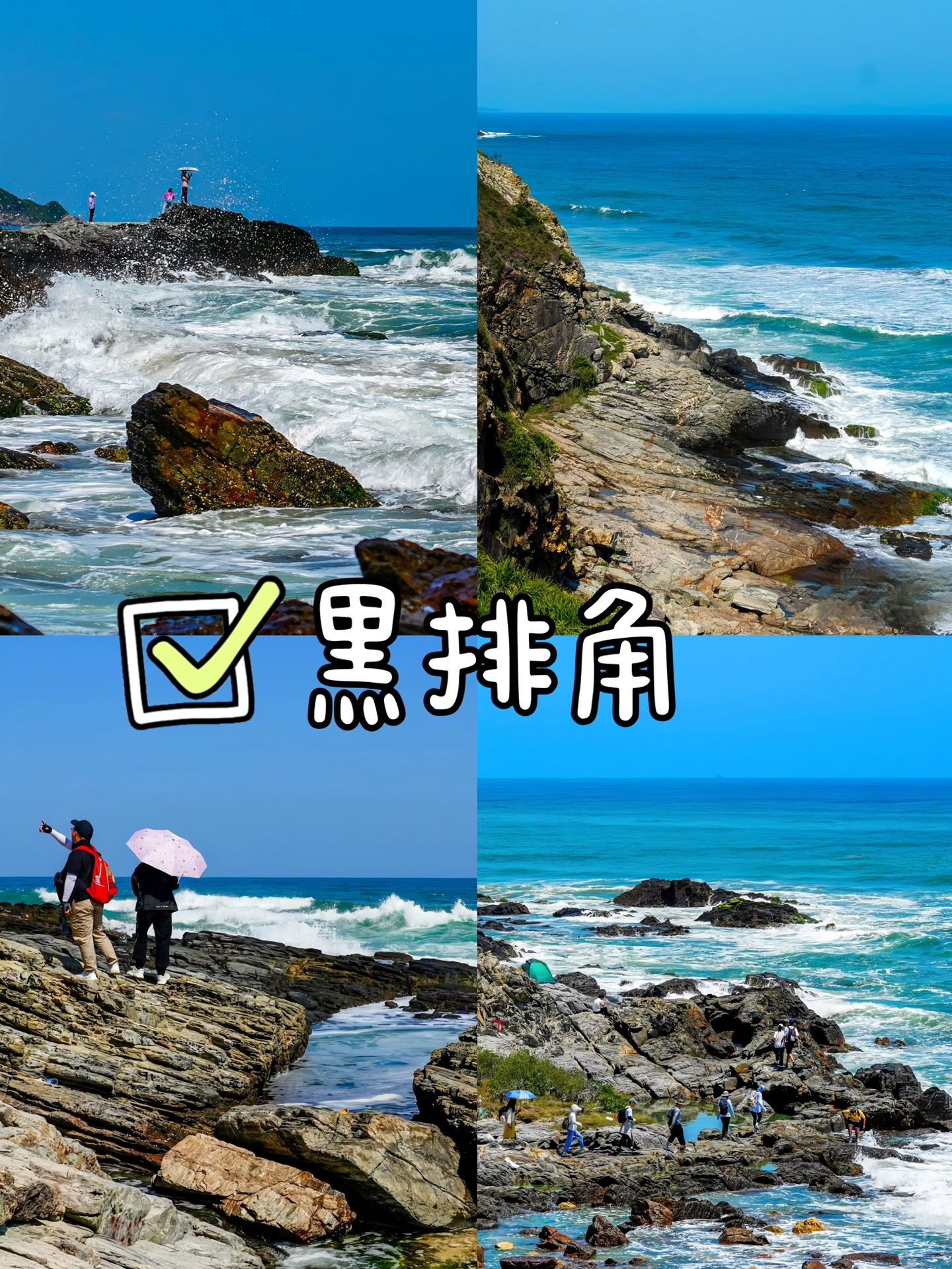 黑排角:徒步圣地,沿途不仅有原始绝美的海滩,合适徒步赶海露营,还有奇特的礁石小岛,超级出片。