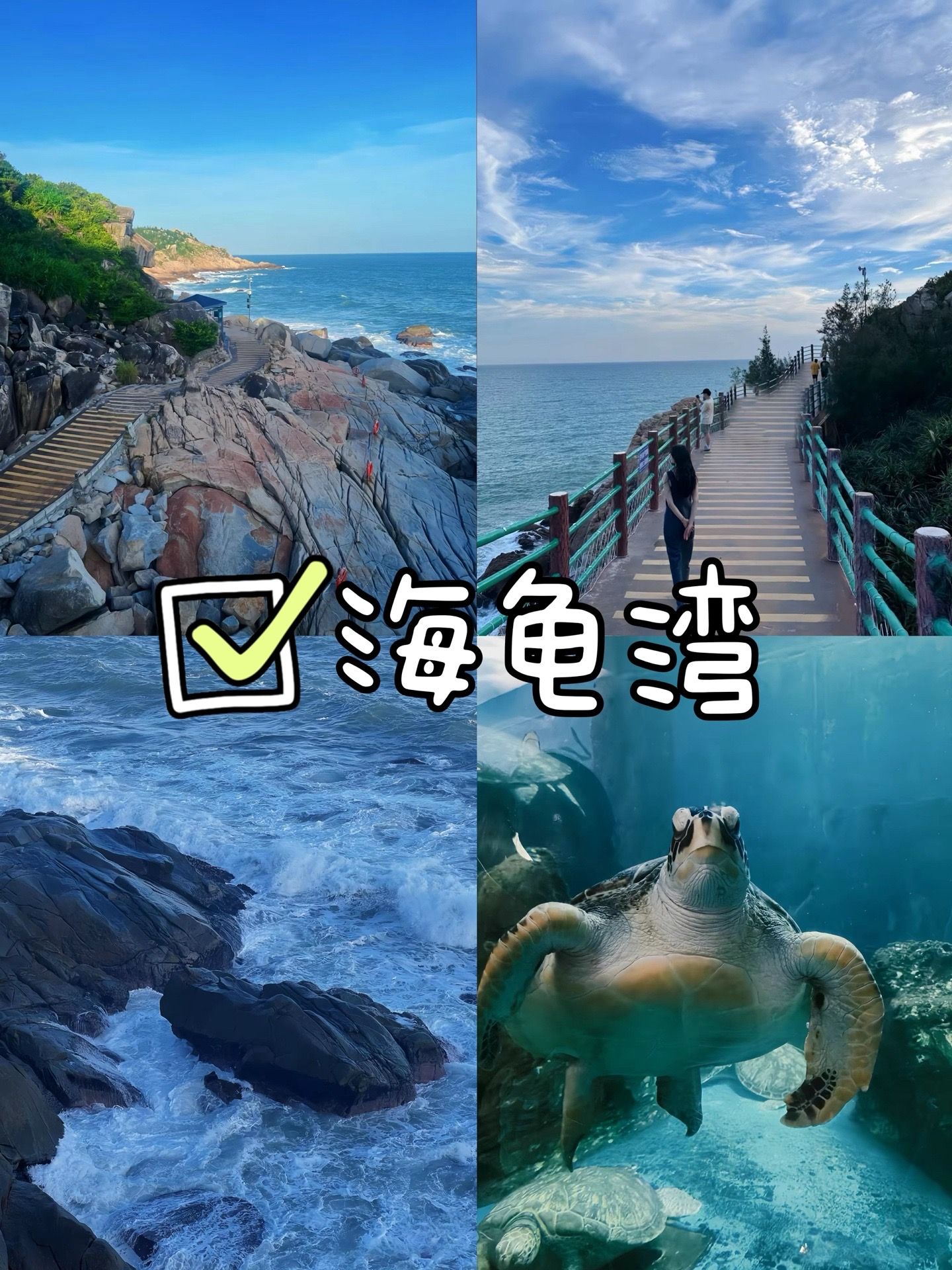 海龟湾:这里是中国唯一的海龟自然保护区,你可以在这里了解海龟的生活习性和保护情况,同时可观赏可爱的海龟、漫步海边悬崖栈道,感受海风拂面。