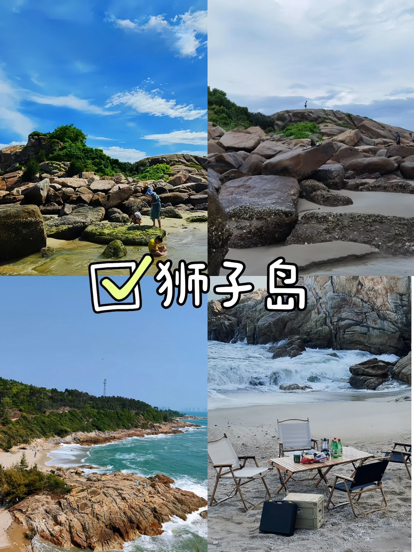 狮子岛:海岸线很美,适合徒步、帐篷、钓鱼、赶海,水质也很清澈。因为小岛很像一只卧坐的狮子所以起名狮子岛,退潮后赶海。