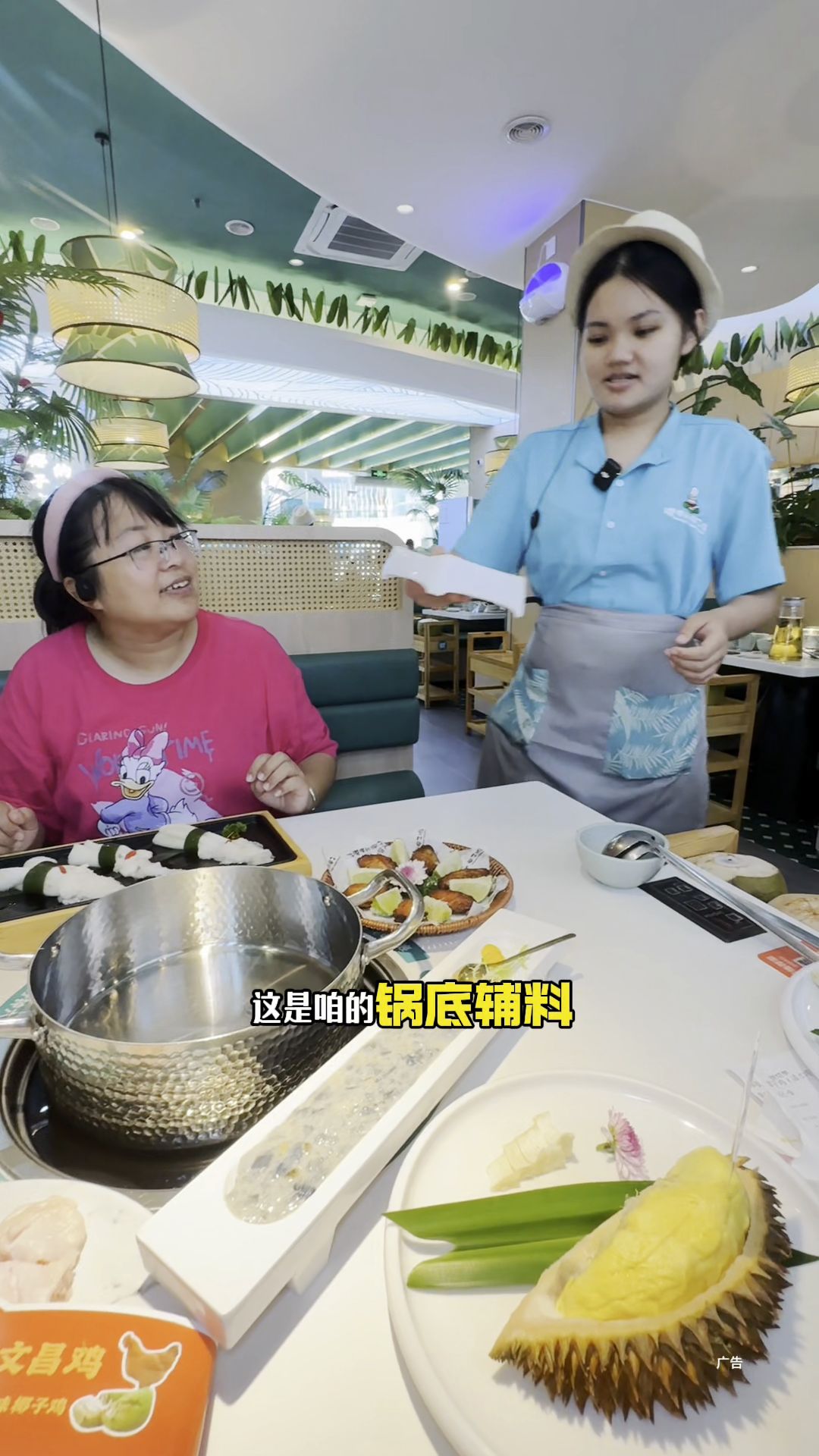 他们都是养足了一百五十八天的走地散养文昌鸡,等一下鸡肉可以跟竹笋一起下,这个是贾贾的隐藏吃法,鸡肉嫩的很嫩,老人小孩都能吃。喜欢吃榴莲的椰子鸡里边可以直接下榴莲,这样鸡肉还能有一种榴莲的特殊香味吸饱了。椰子汤的竹笋再蘸上秘制蘸料,真是脆嫩爽口。椰子冰激凌焦糖烤红薯,这款甜品真的是太上头。