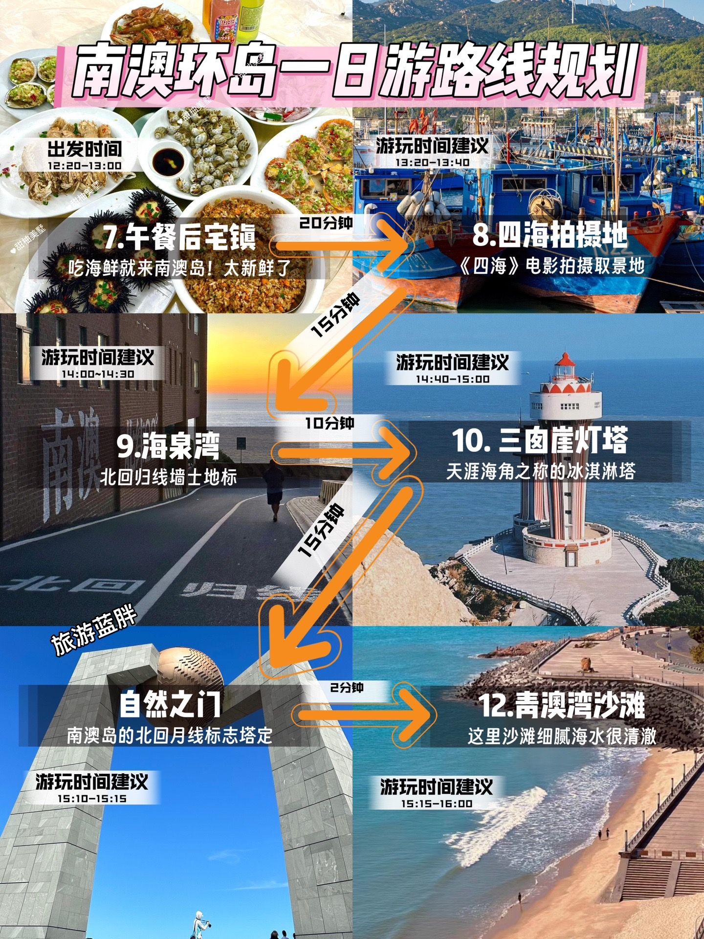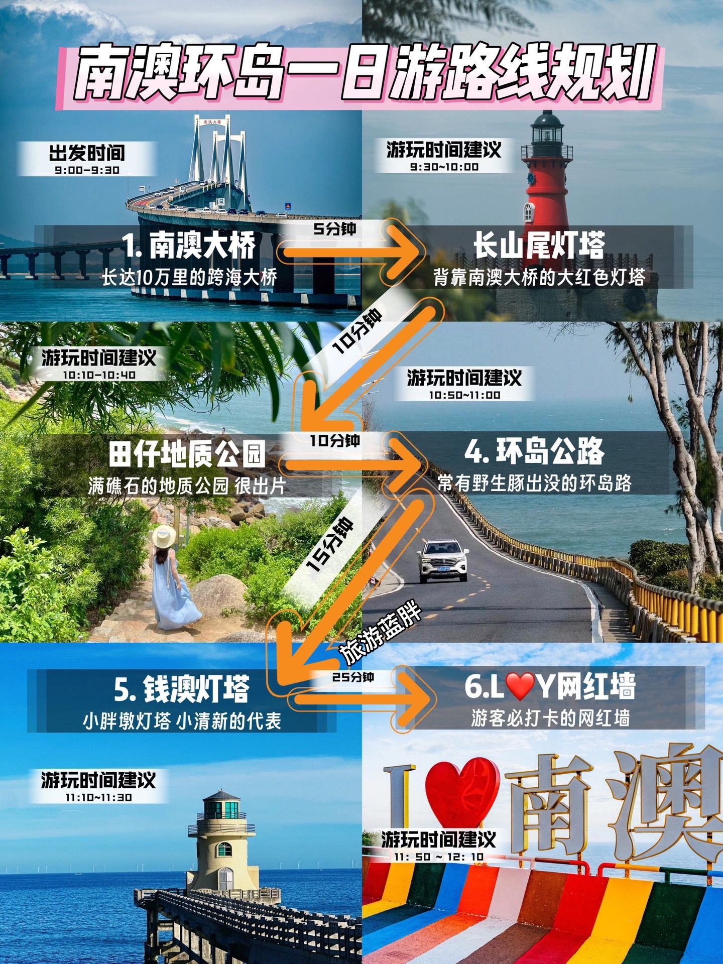 推荐路线:南澳大桥长山尾灯塔钱澳湾灯塔三囱崖灯塔青澳湾自然之门回归线地标