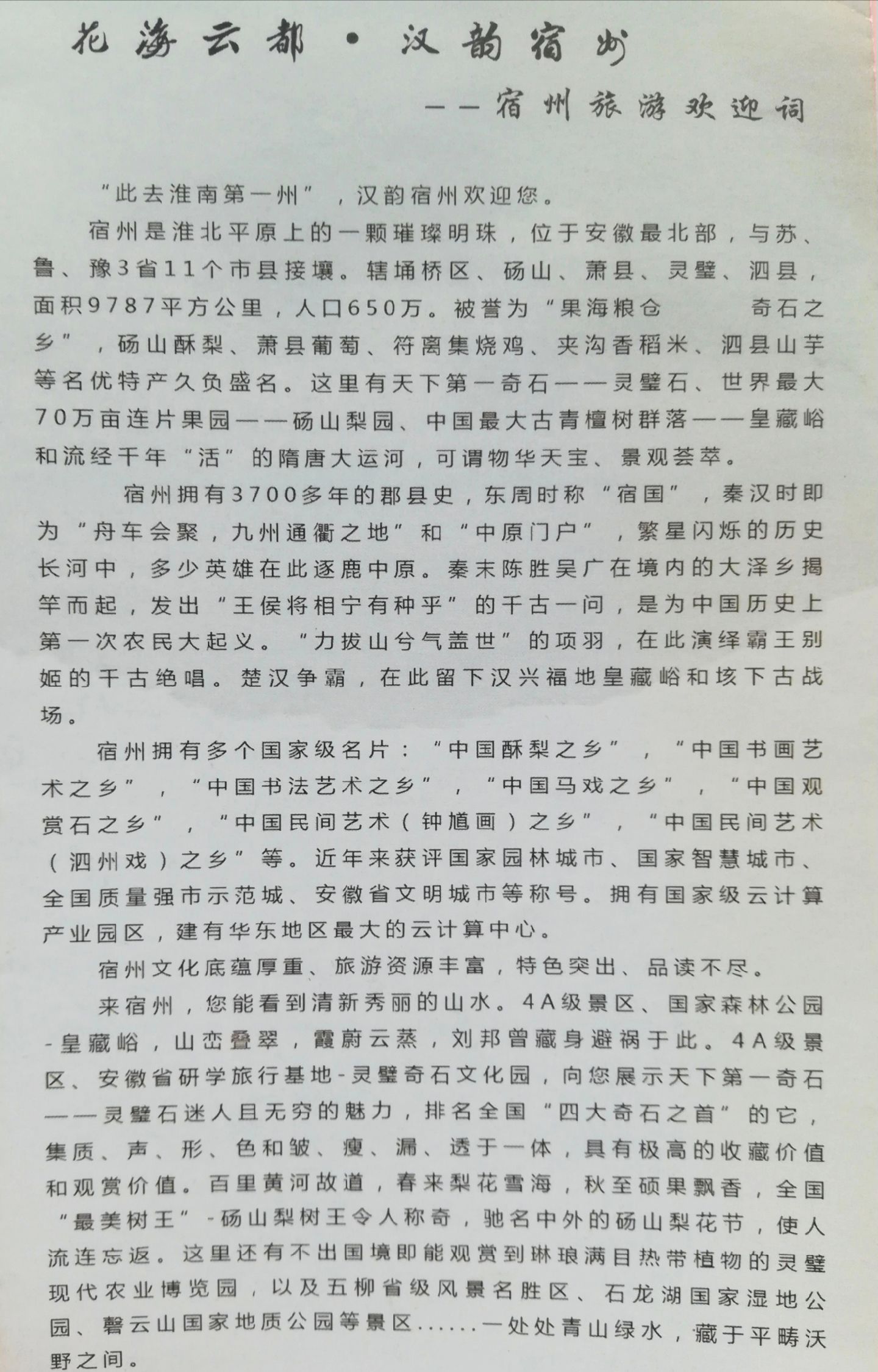 回乡散记(31):宿州旅游的欢迎词,再这样开头不合适