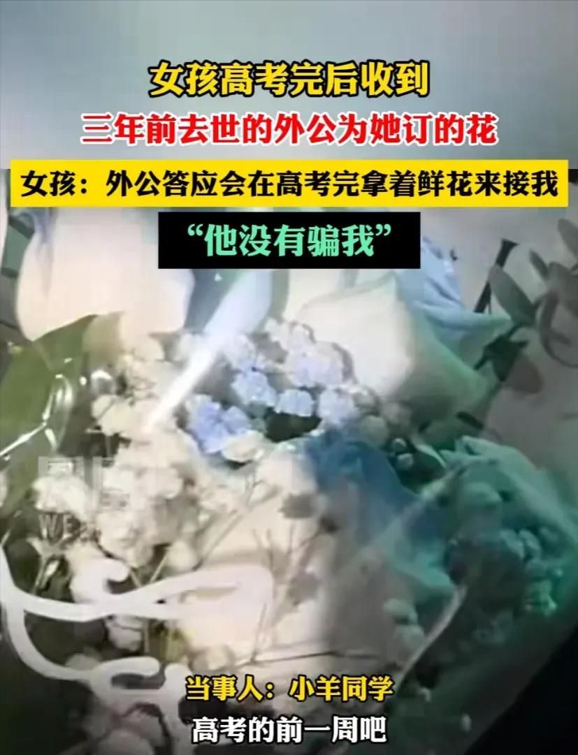 泪奔!广东茂名,一位女孩高考后,竟然收到三年前去世的外公为她订的花,女孩说