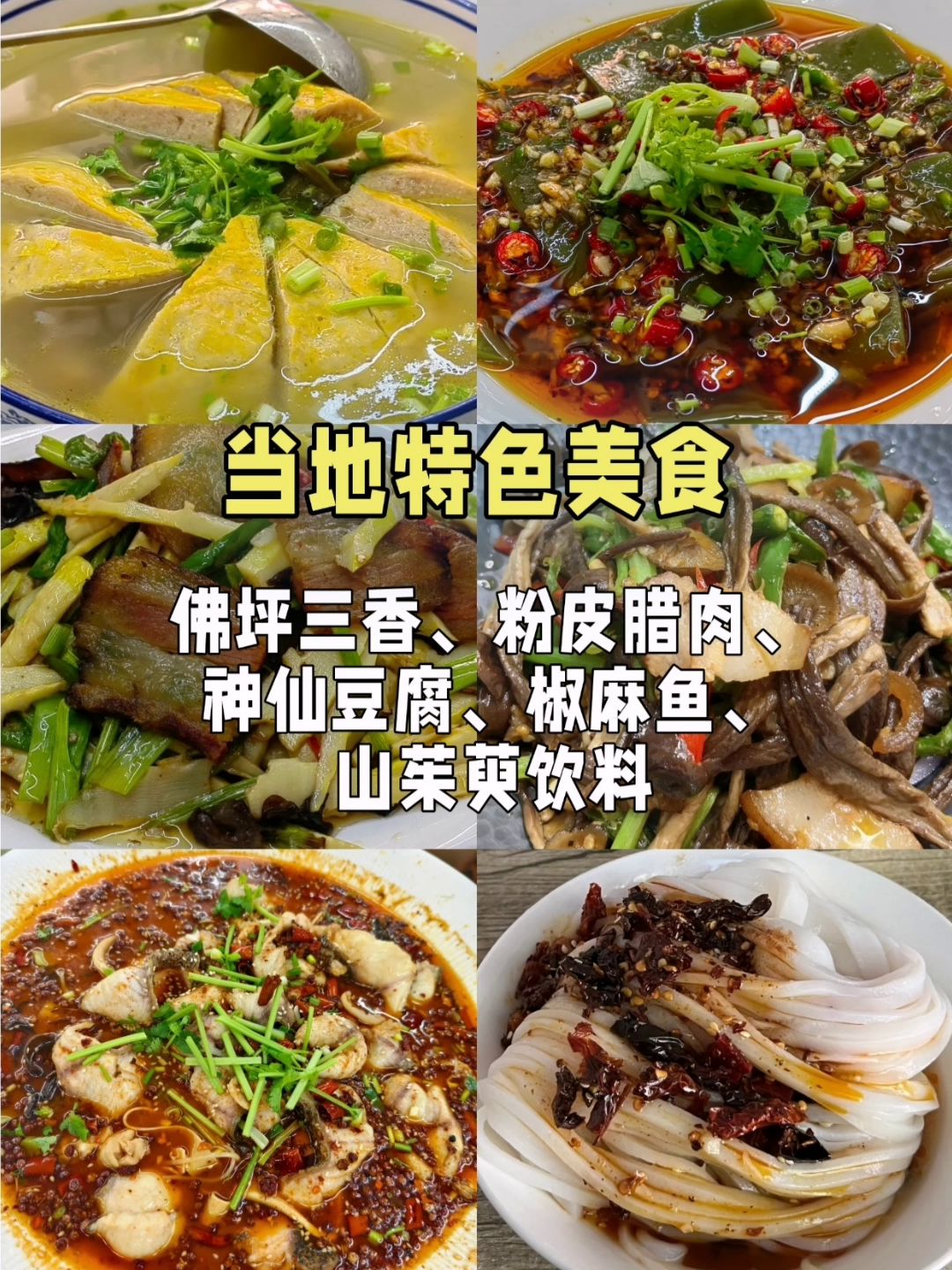 ·当地特色美食:佛坪三香、粉皮腊肉、神仙豆腐、椒麻鱼、山茱萸饮料。