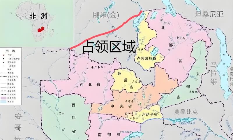 南部的赞比亚已做好出兵准备,意图北上进攻。刚果金的通巴山脉几乎将赞比亚的领土一分为二,赞比亚自然希望将这一部分重新纳入自己的版图。根据地图,刚果金南部的区域正好在赞比亚的攻击范围内。如果成功,赞比亚的领土将更加匀称,不再担心被分割。