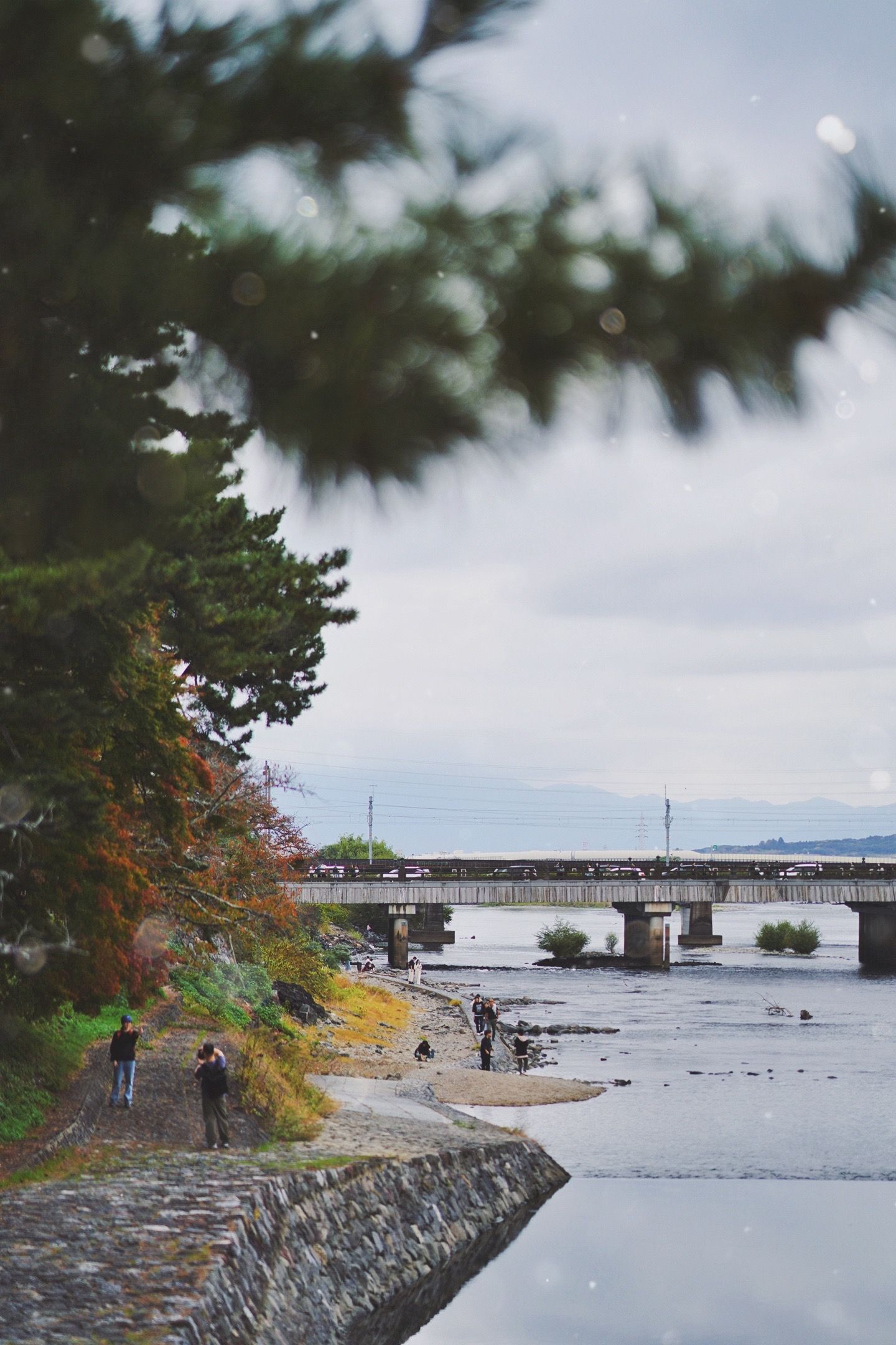 宇治川河岸和塔之岛、桔岛分别由喜撰桥、桔桥、朝雾桥、中岛桥连接起来。河中许多尖嘴长脚的水鸟飞舞。在河道旁的堤岸上散步,很惬意,也是游人和本地人共同的喜爱。公园椅上不乏谈恋爱的年轻人休憩。