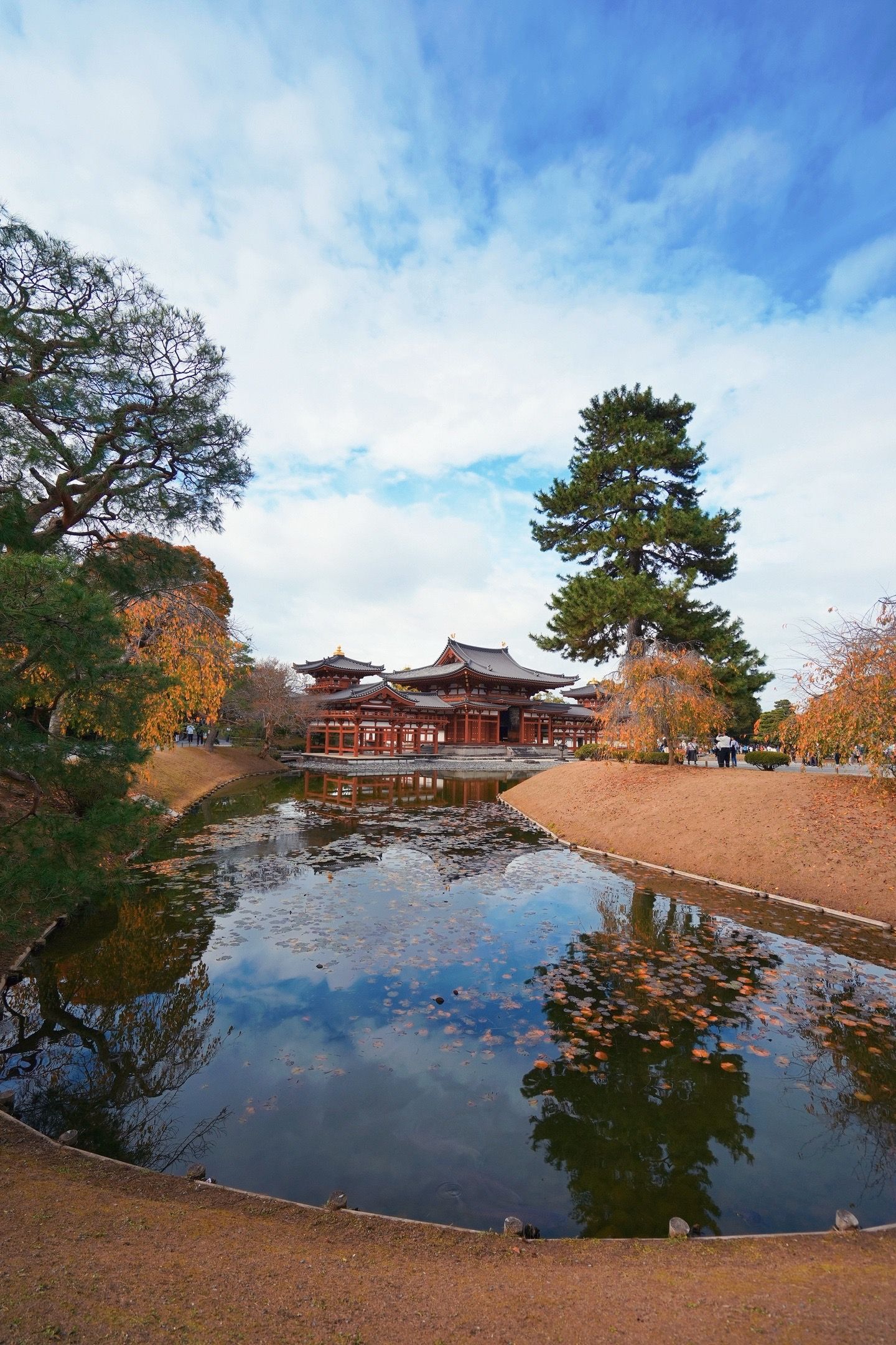 创建于公元11世纪中期,平安时代池泉舟游式的寺院园林,前临宇治川,远对朝日山。皇室居住于此,园中樱花、杜鹃花和莲花每年喷芳吐艳。