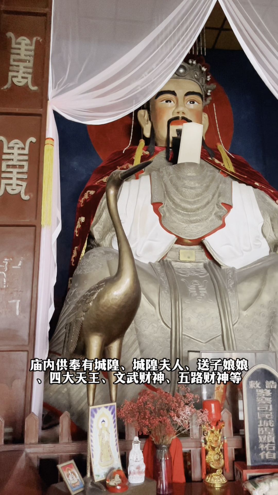 ·第三、三元城隍庙。装饰精美,其砖雕木雕、石雕琉璃栩栩如生。山门前歇山一字形水磨砖影壁,高十余米,中间镶嵌有透雕的鲤鱼跳龙门影壁,前有两万余斤重的一对铁旗杆,铁笼缠绕气宇轩昂。山门东西八字墙上有苍龙训子和鱼龙变化的砖雕,形象逼真栩栩如生。
