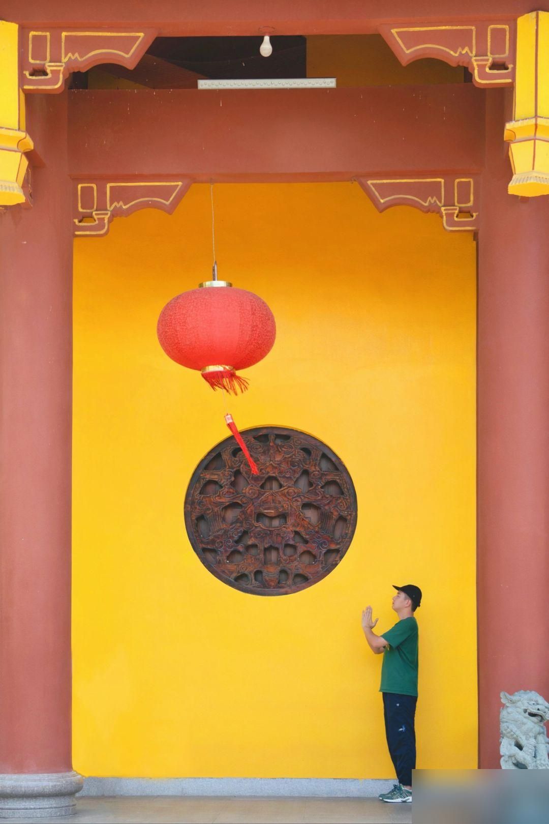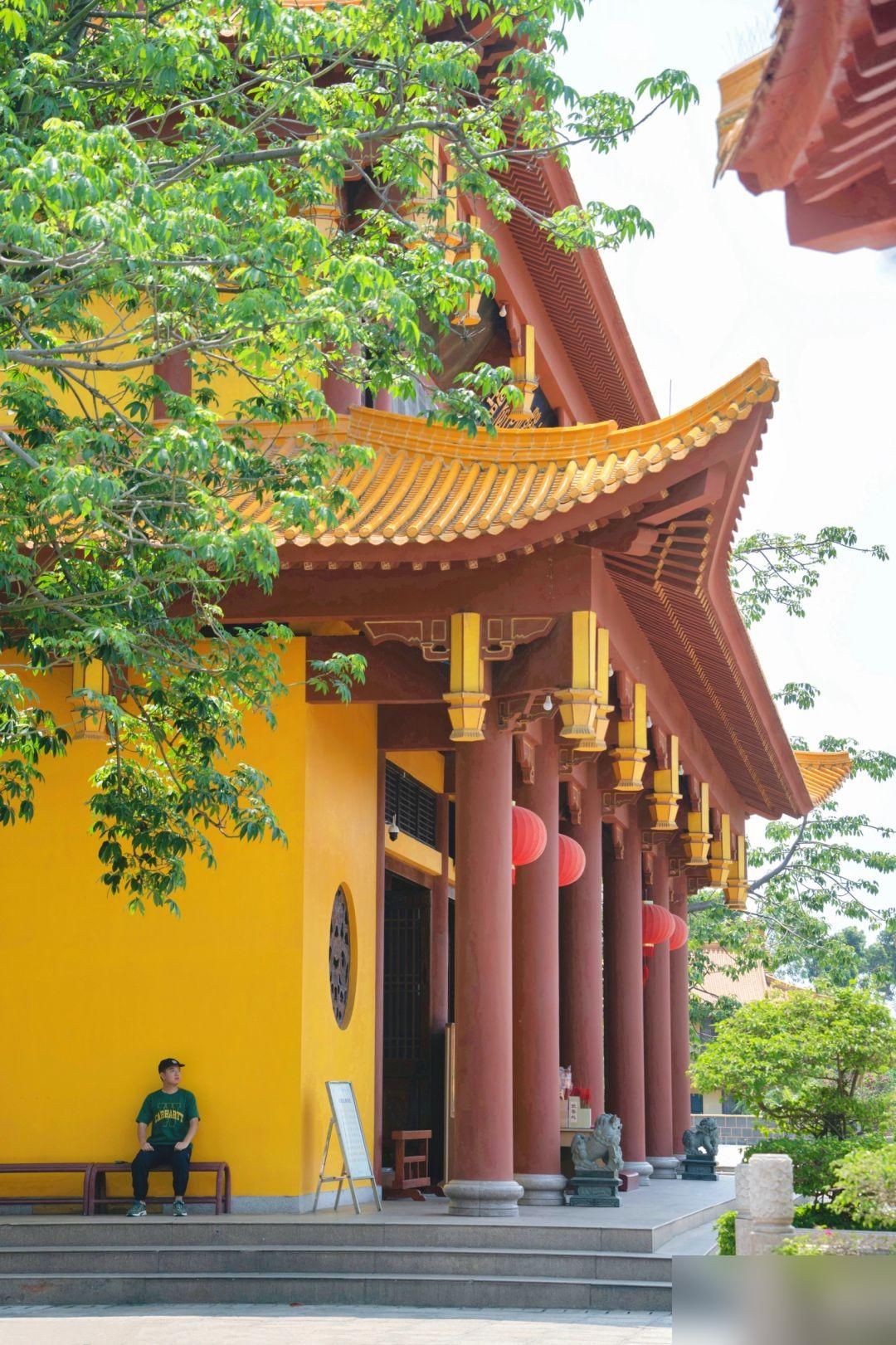 大雄宝殿左右侧的黄墙拍照很出片