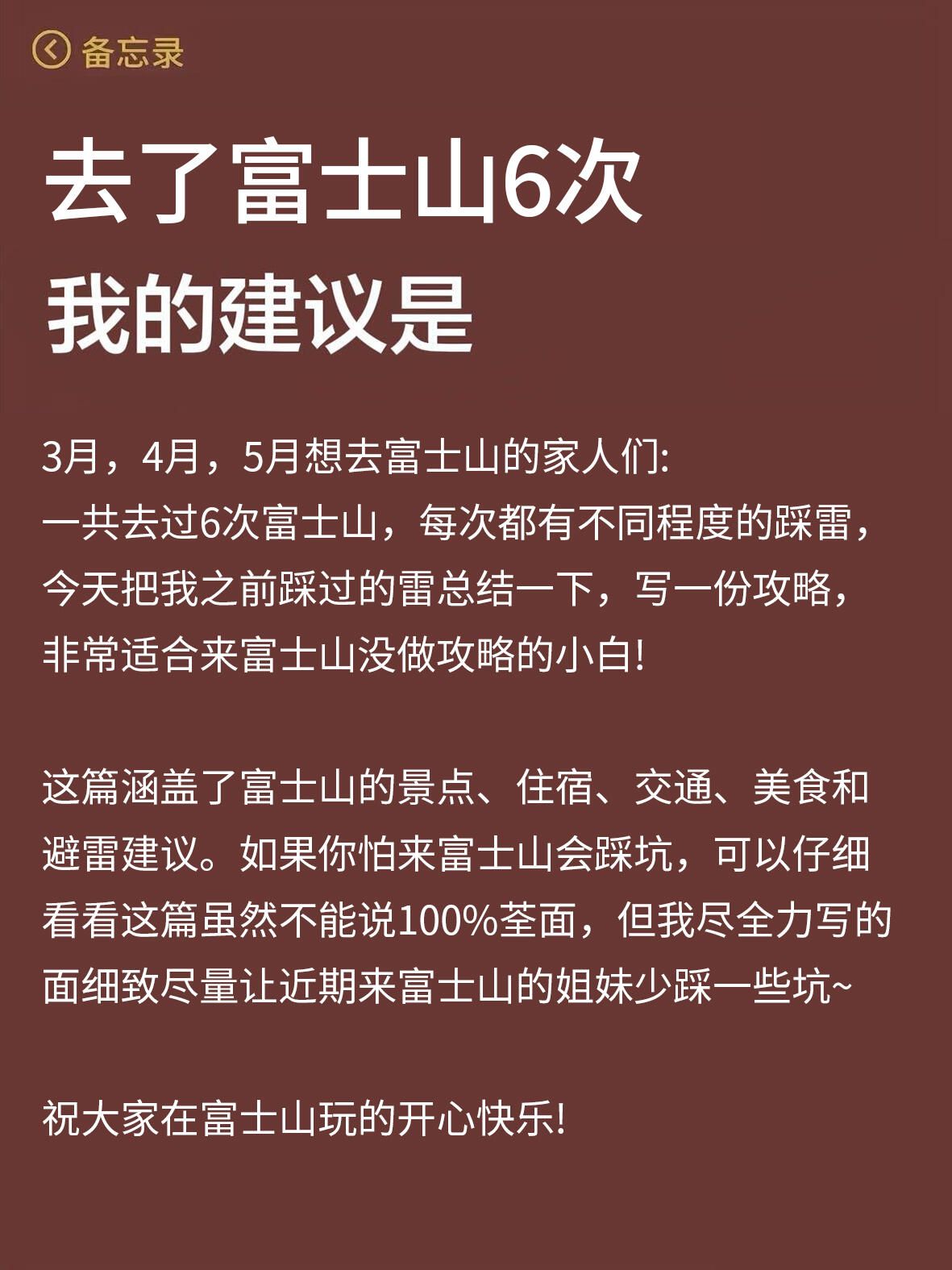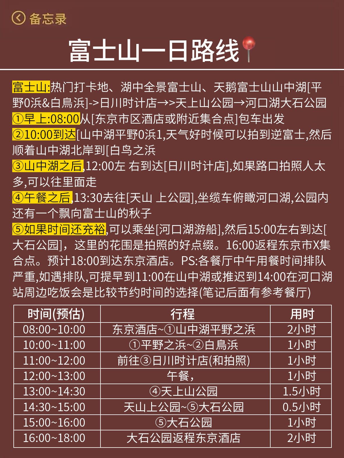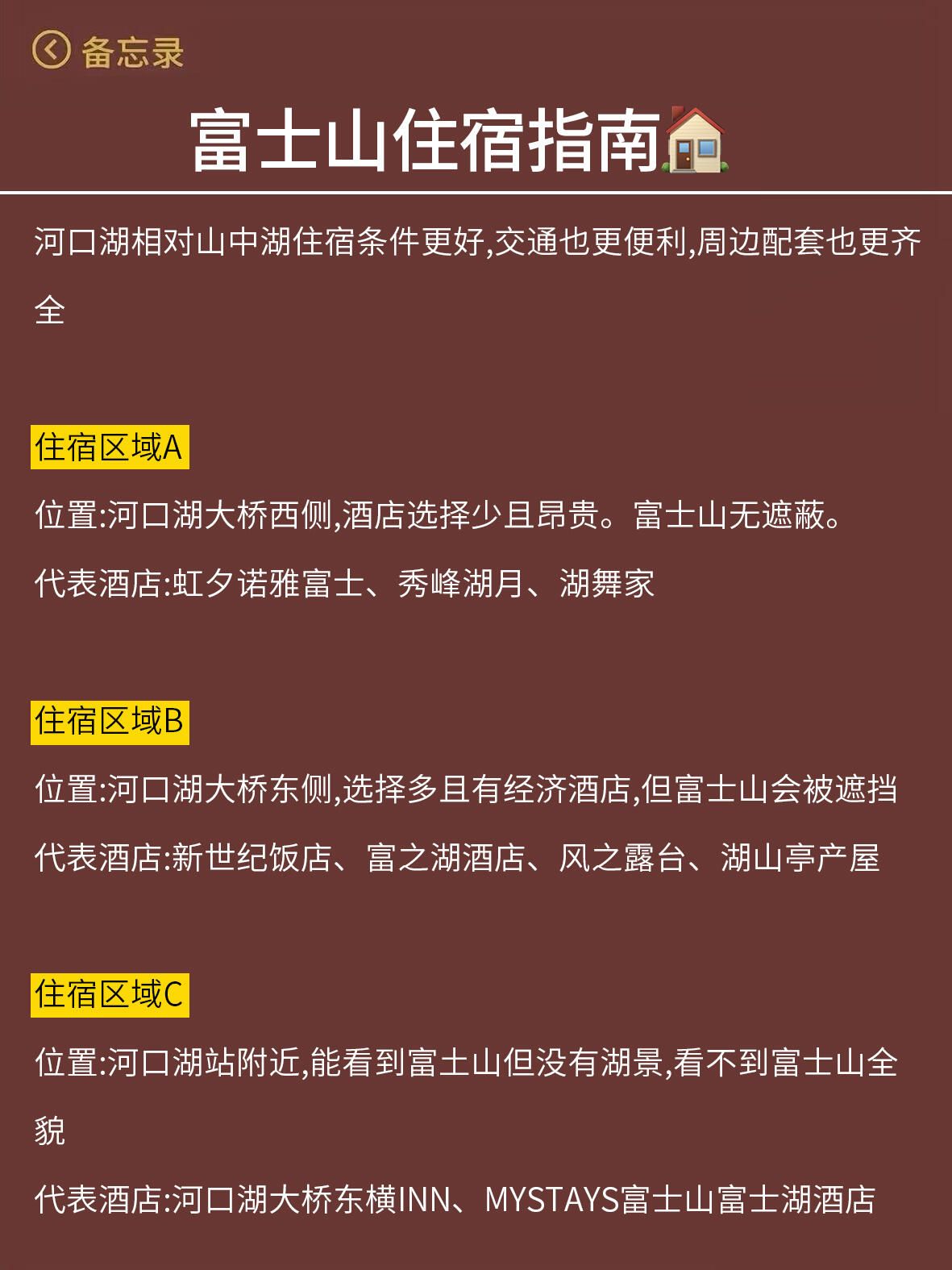 住宿区域:优先选河口湖/箱根,温泉+山景双重享受,提前2个月订房