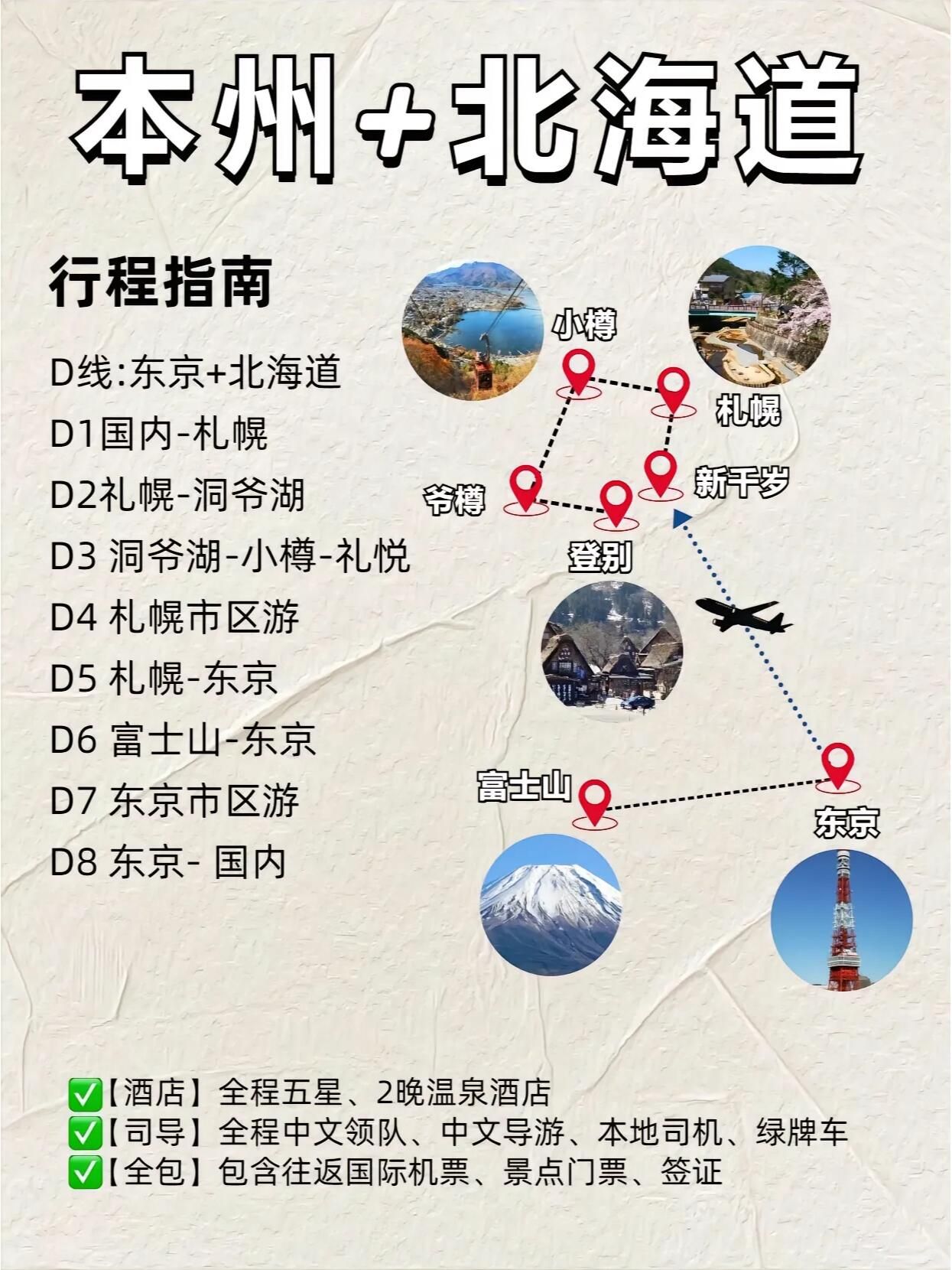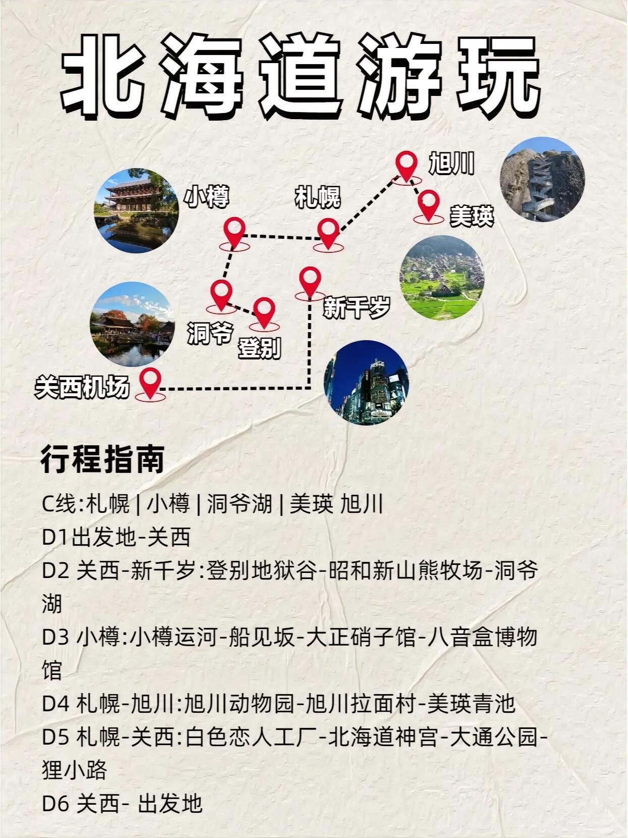 北海道线路:函馆—登别—富良野/美瑛—札幌—小樽