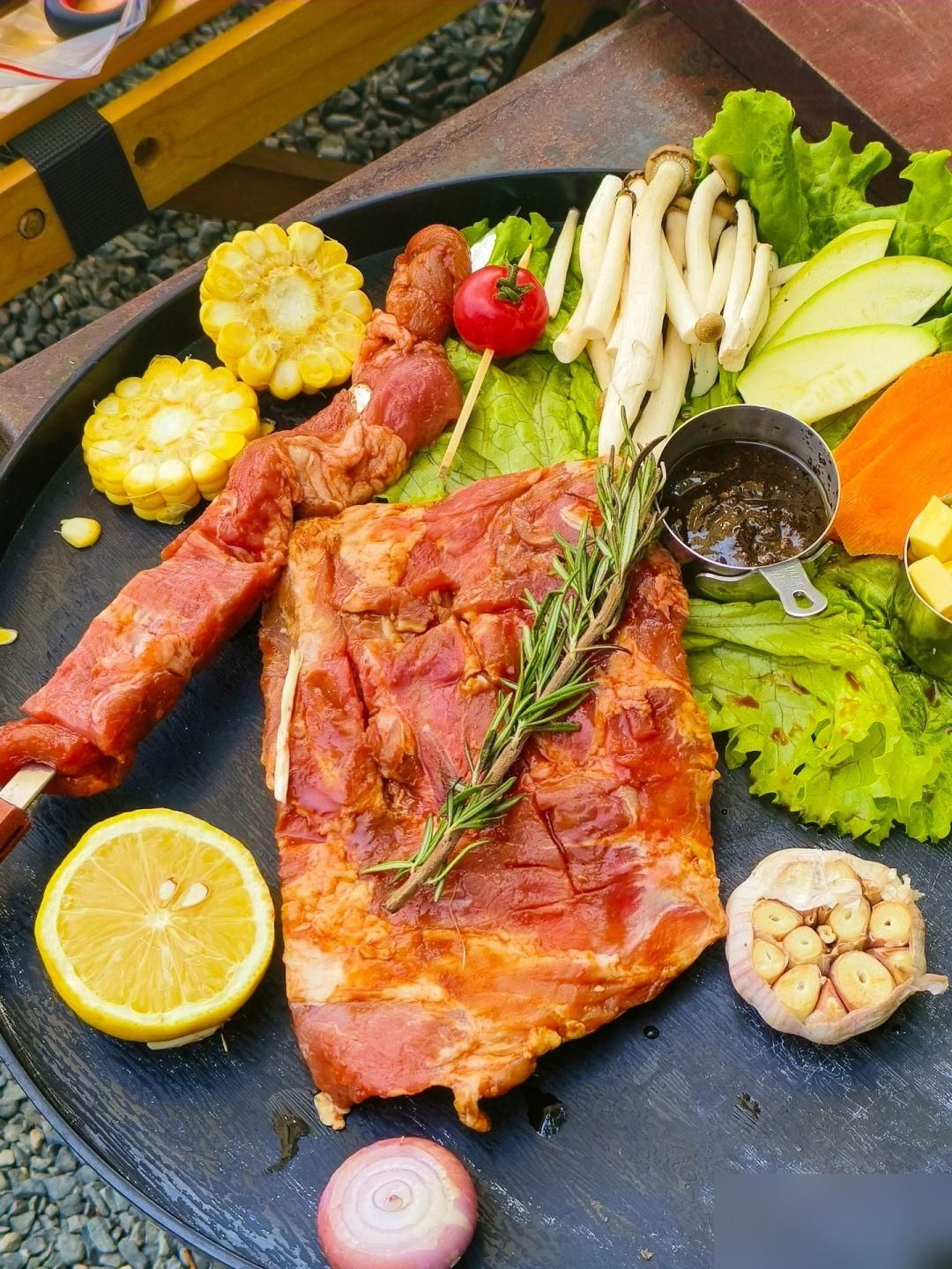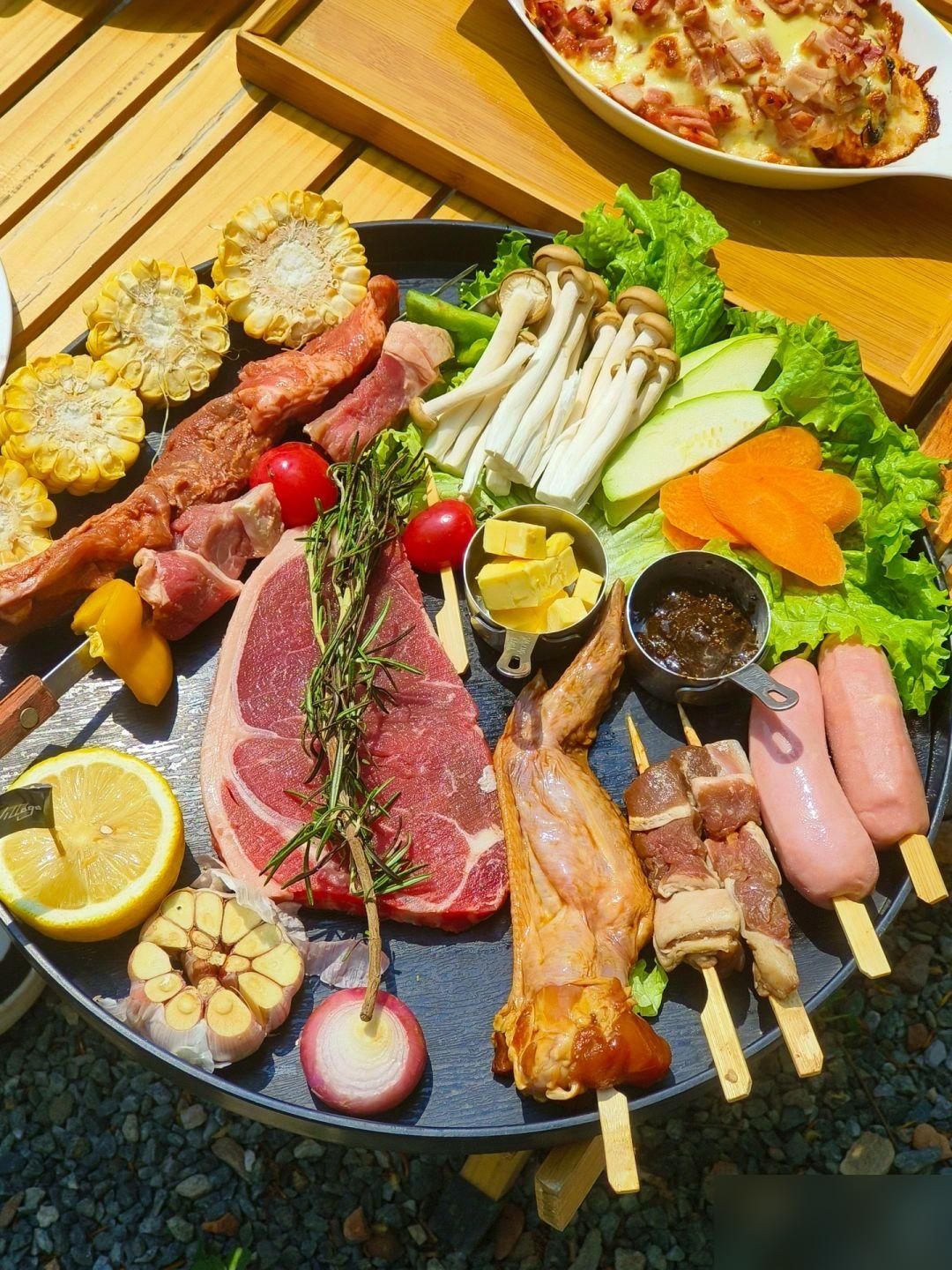 餐品更是让人惊艳!结合了怀柔特色的虹鳟鱼和泰式口味创新菜,主打水边露天烧烤BBQ,还有意大利手工薄饼披萨和原瓶进口红酒,边烤肉边享受音乐和露天电影,夜晚的灯火更是增添了无限的氛围!