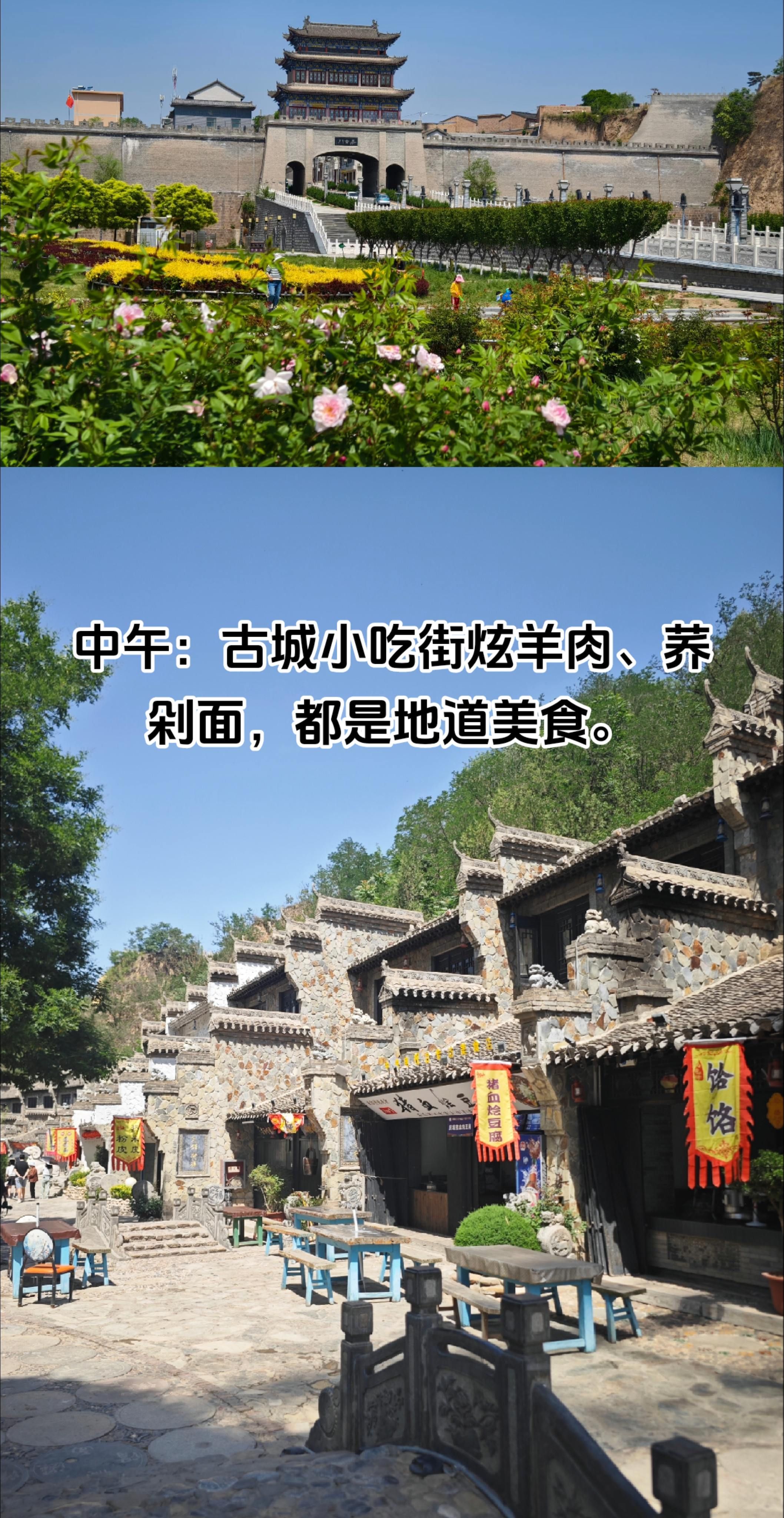中午:冲向古城小吃街,开启美食盛宴。点上香气扑鼻的羊肉、爽口的荞剁面、软糯的燕麦揉揉,价格实惠,味道超赞,全家人吃得心满意足。