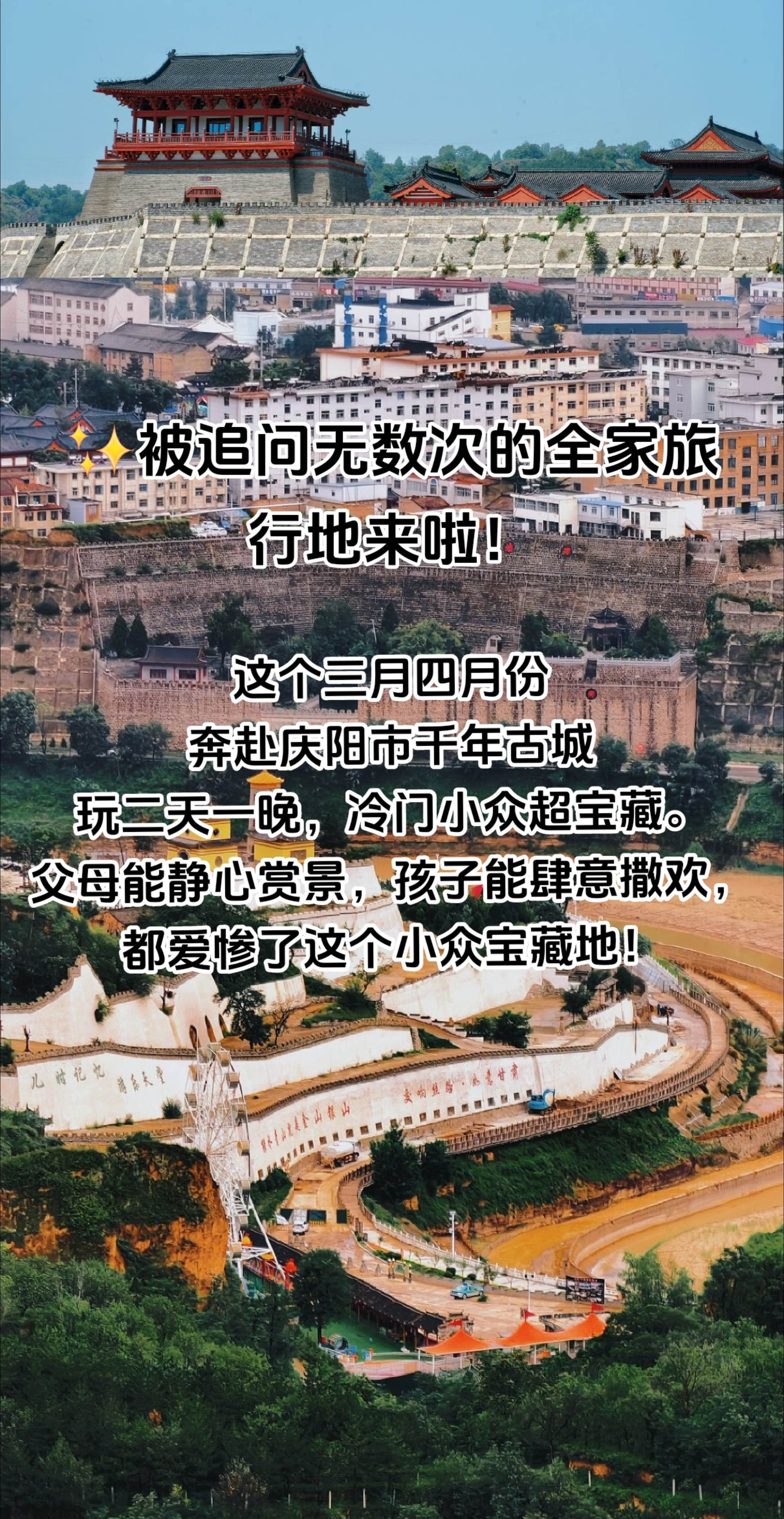 别犹豫了,三四月份就带家人来庆阳市古城,小众不踩雷,给家人一次难忘的旅行!