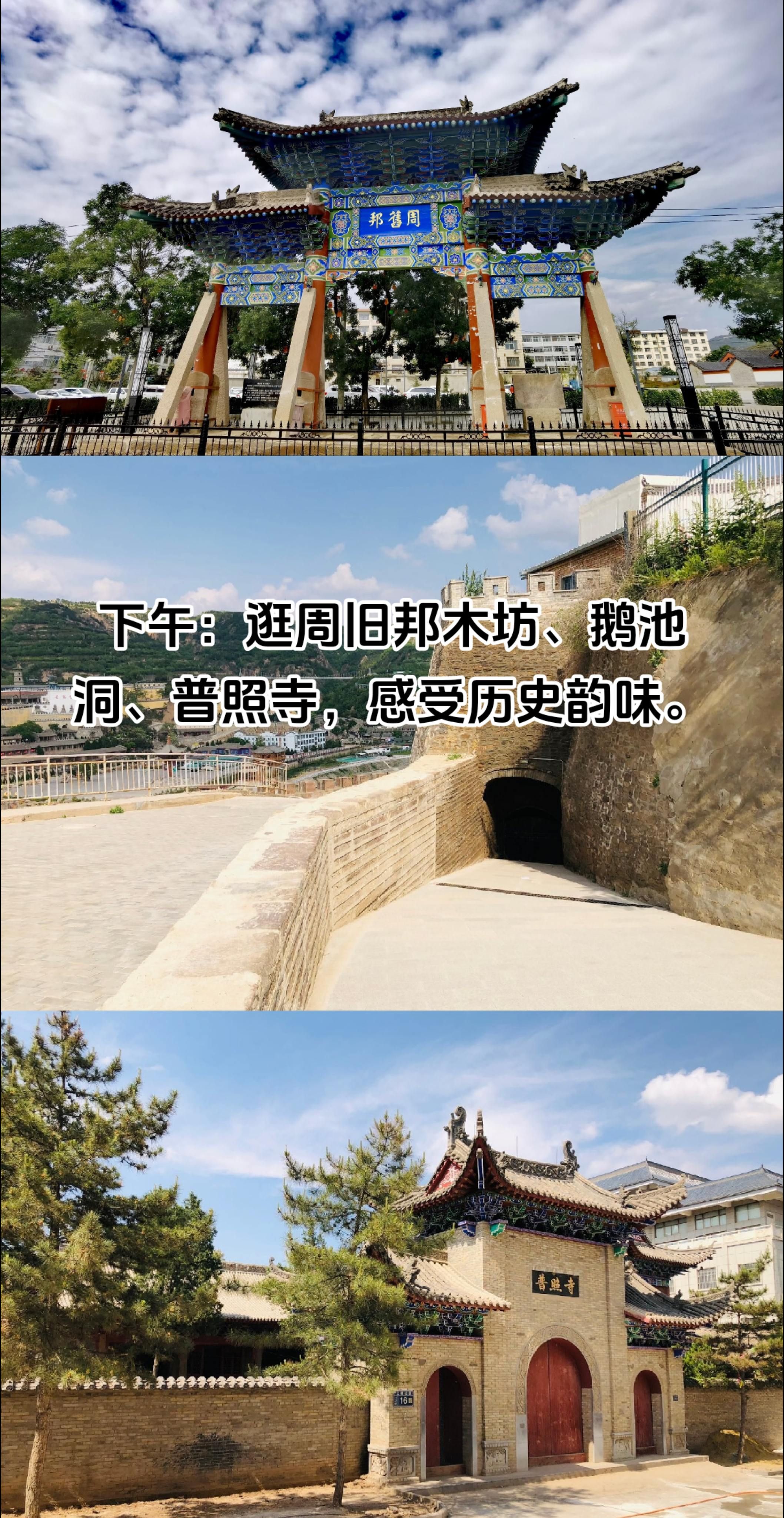 下午:打卡周旧邦木坊、鹅池洞,感受历史韵味。接着来到普照寺,独特的建筑风格让人眼前一亮,随手一拍就是大片。
